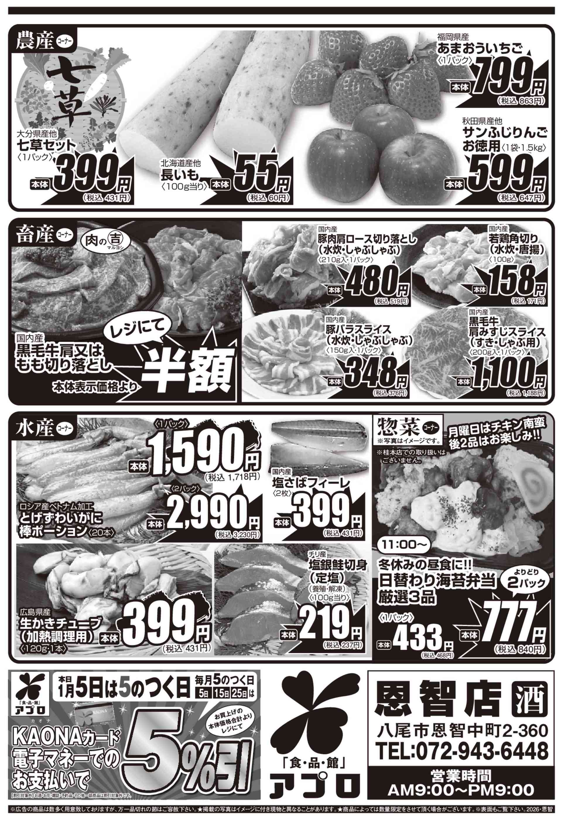 食品館アプロ恩智店今週のチラシ(2026年1月5日〜1月11日)