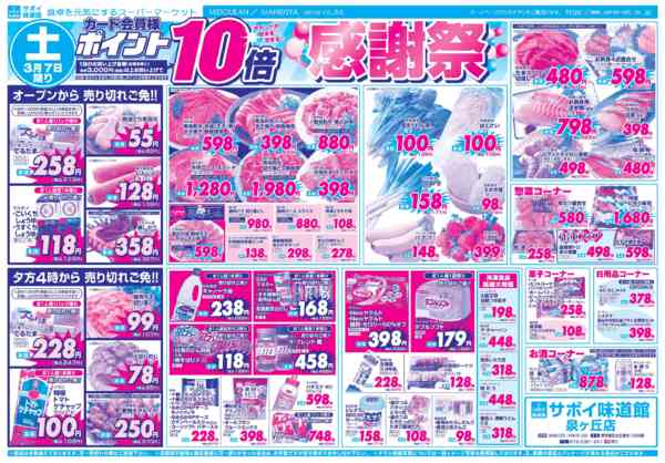 ※「店舗の掲載内容について」チラシガイドに掲載している情報は、独自に調査した内容及びユーザーから頂いた情報を掲載しています。お気づきの点がございましたら「お問い合わせ」よりご連絡ください。また店舗の営業状況、商品に関するお問い合わせは直接店舗事業者にご確認ください。