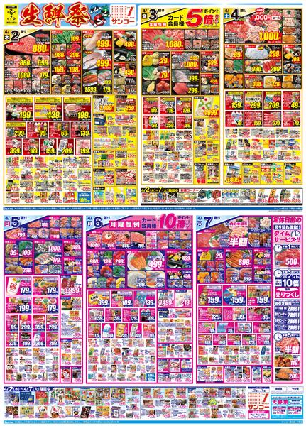 特売やセール情報など最新のチラシを掲載中。(2種類、3枚のチラシを掲載しています)