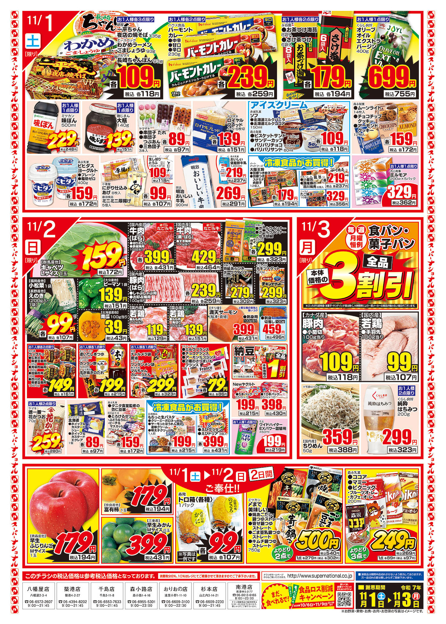 ナショナル森小路店今週のチラシ(2025年11月3日〜11月9日)