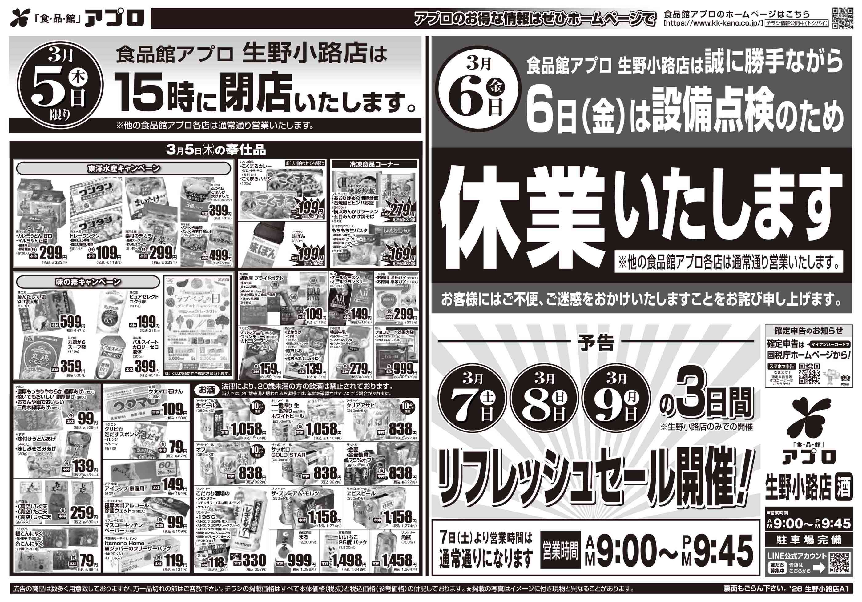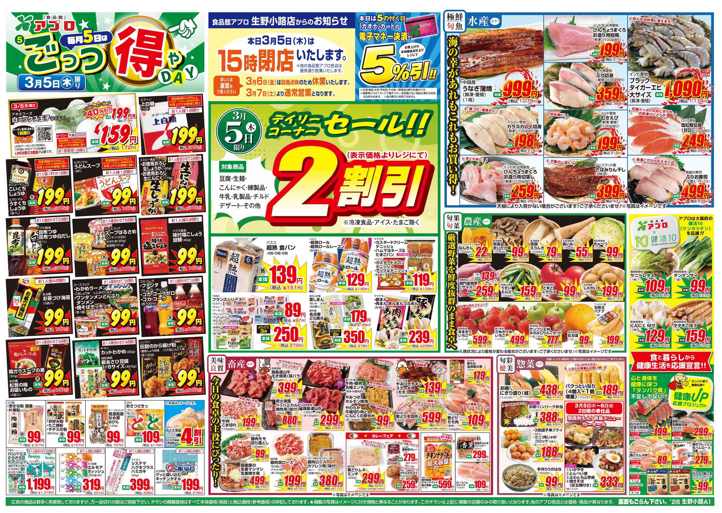 食品館アプロ生野小路店今週のチラシ(2026年3月9日〜3月15日)