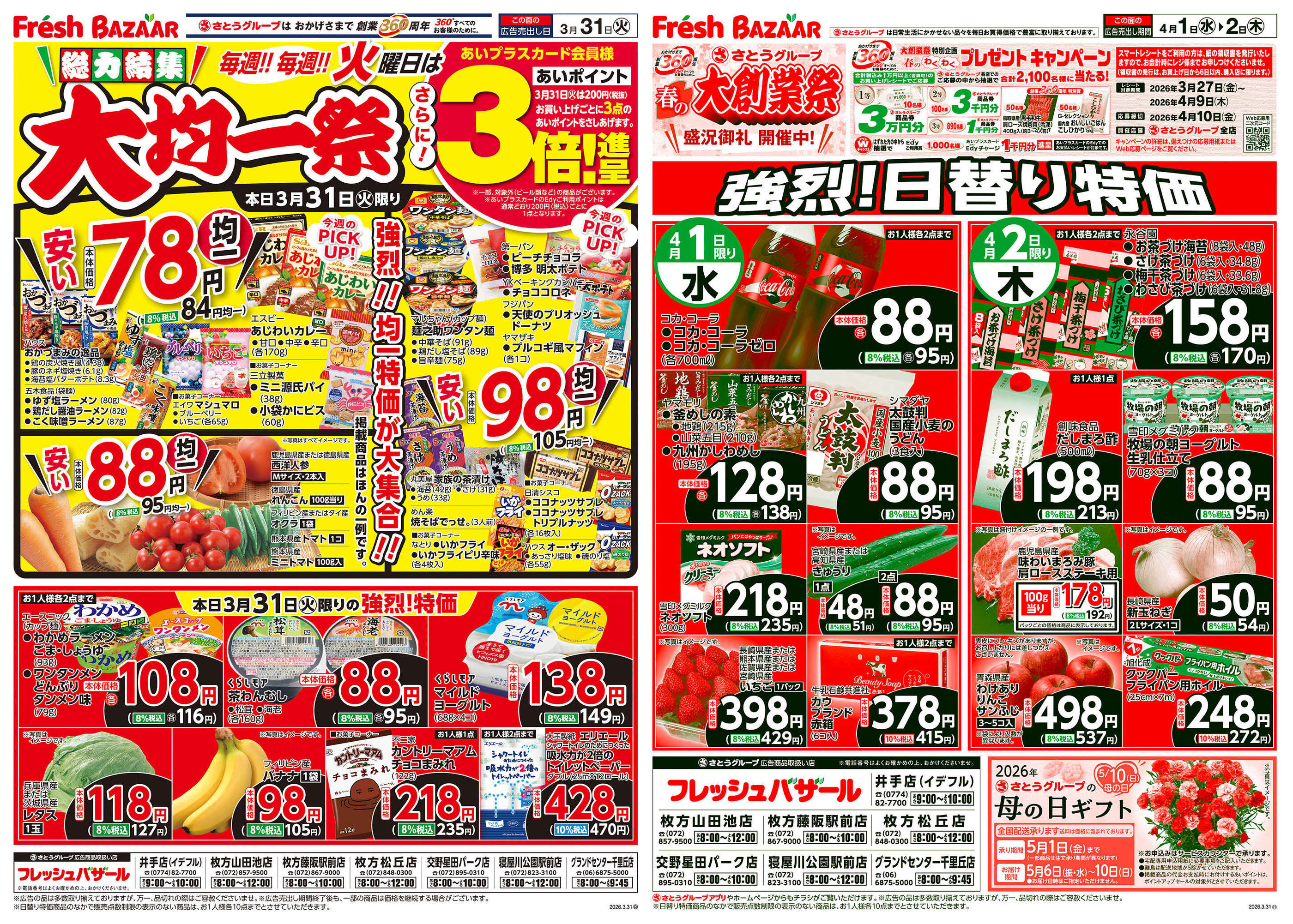 フレッシュバザール枚方山田池店今週のチラシ(2026年3月30日〜4月5日)