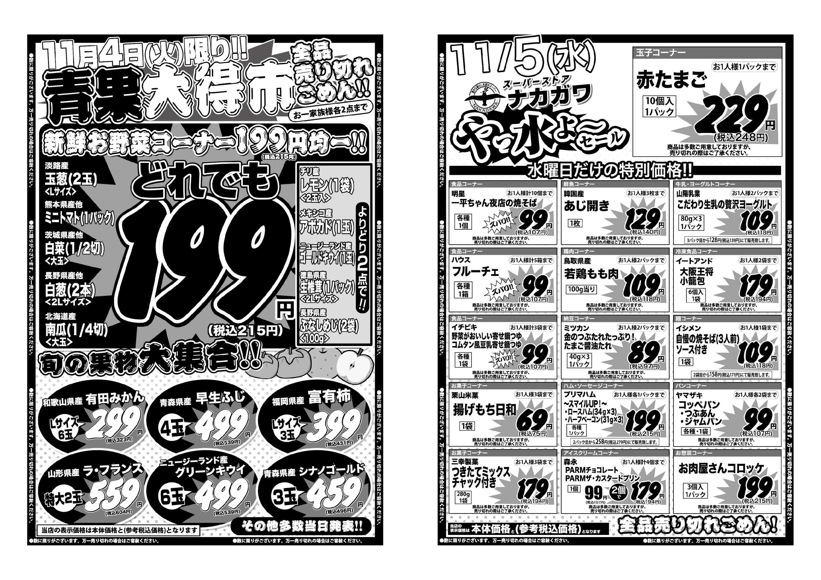 スーパーストアナカガワひらら光善寺店今週のチラシ(2025年11月3日〜11月9日)