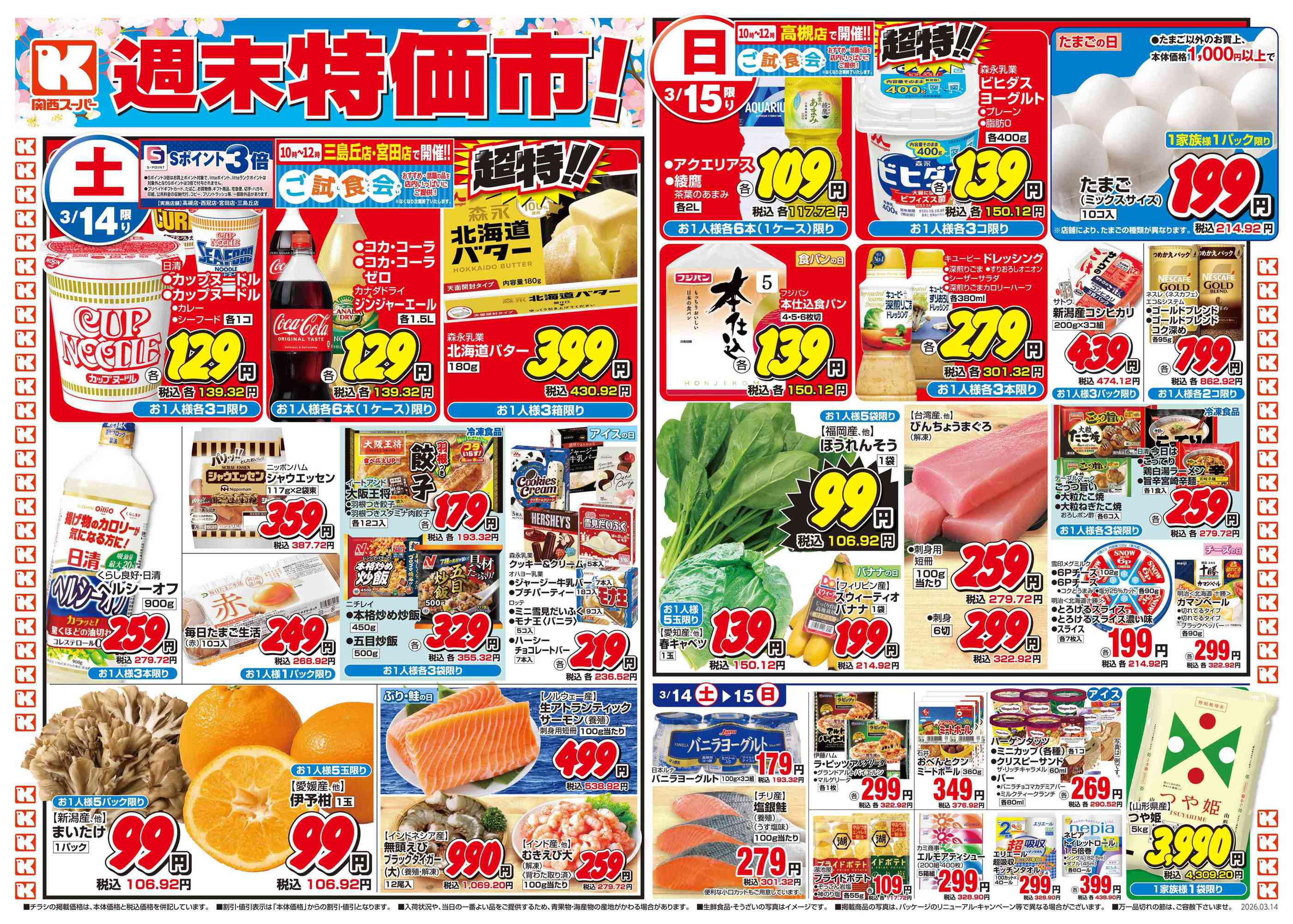 関西スーパー高槻店今週のチラシ(2026年3月9日〜3月15日)