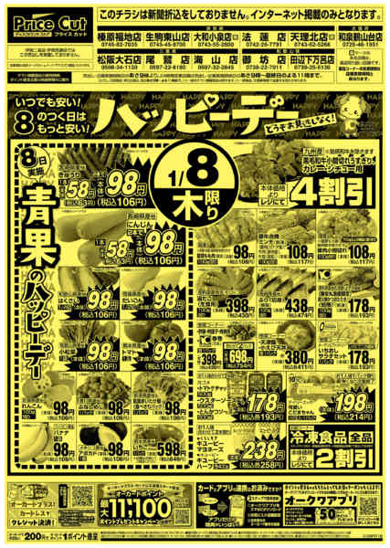 ※「店舗の掲載内容について」チラシガイドに掲載している情報は、独自に調査した内容及びユーザーから頂いた情報を掲載しています。お気づきの点がございましたら「お問い合わせ」よりご連絡ください。また店舗の営業状況、商品に関するお問い合わせは直接店舗事業者にご確認ください。