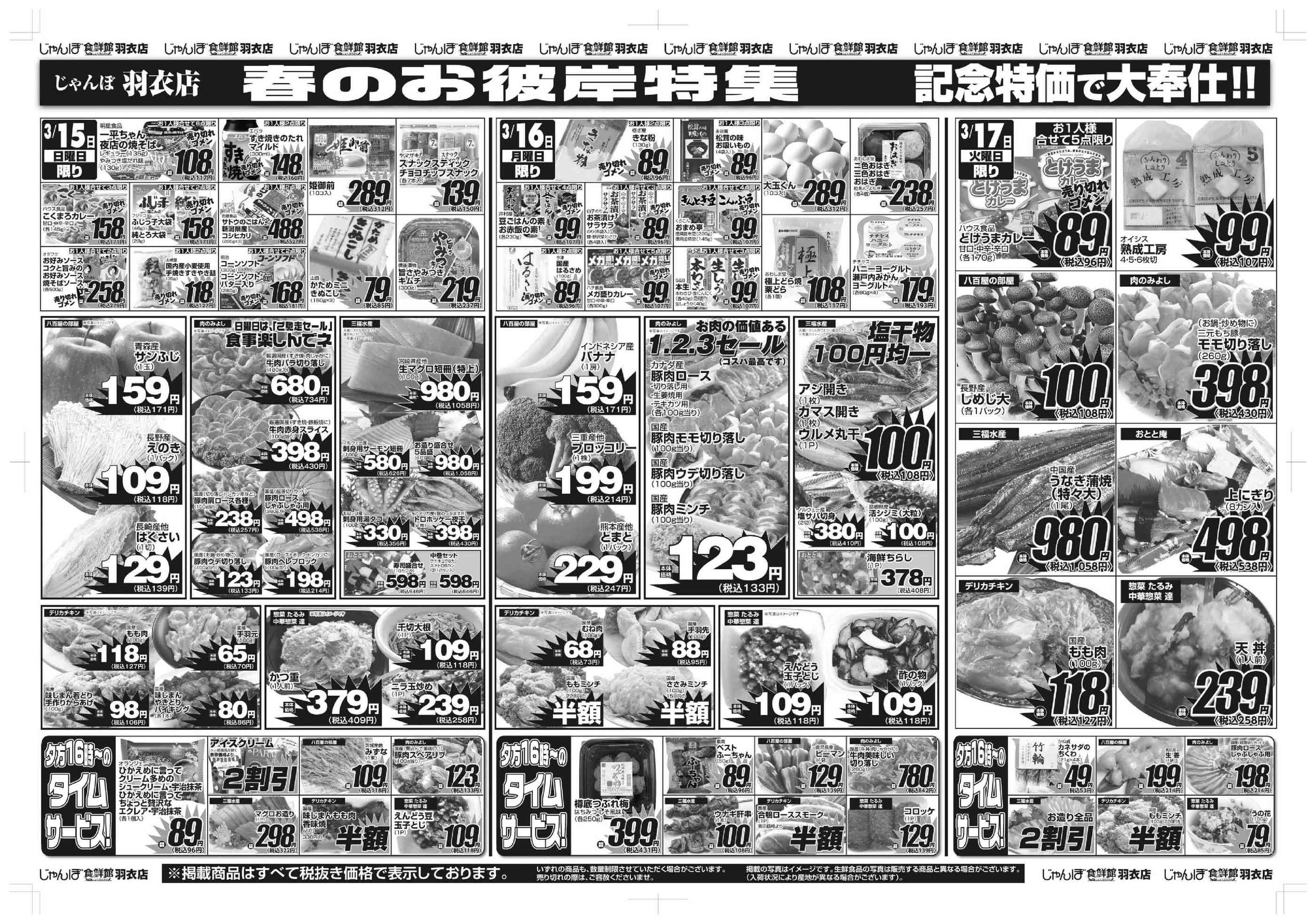 じゃんぼ食鮮館羽衣今週のチラシ(2026年3月9日〜3月15日)