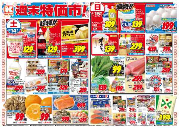 特売やセール情報など最新のチラシを掲載中。(2種類、2枚のチラシを掲載しています)