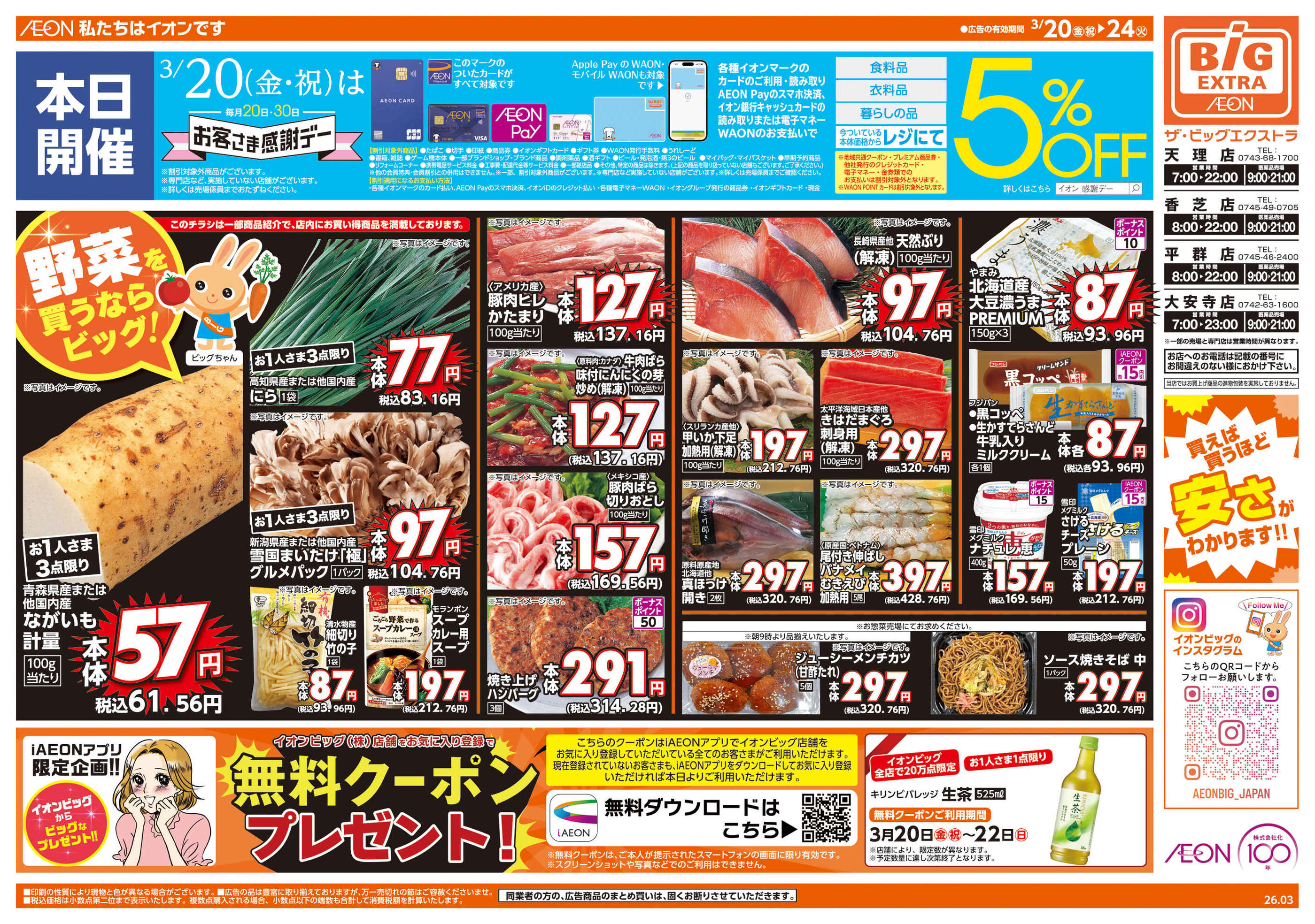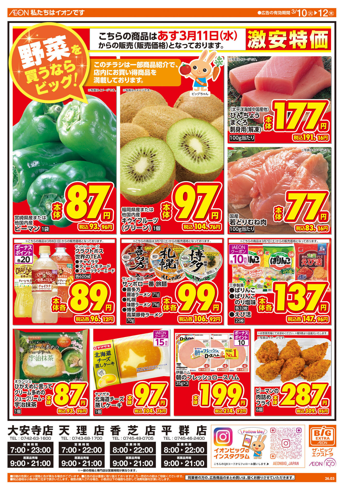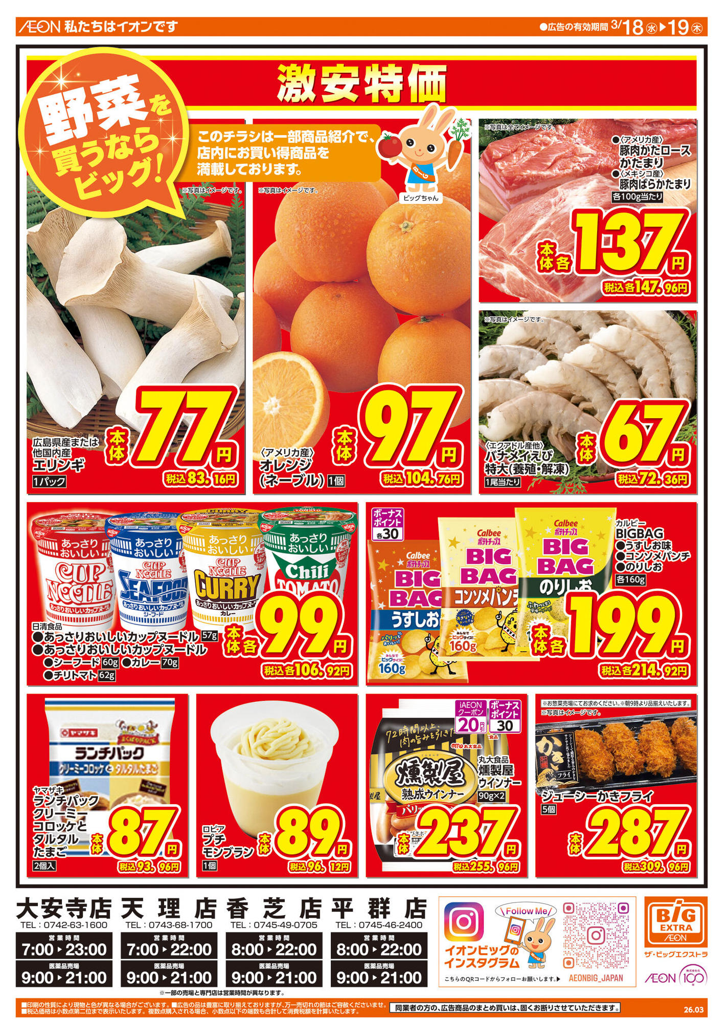 ザ・ビッグエクストラ天理店今週のチラシ(2026年3月16日〜3月22日)