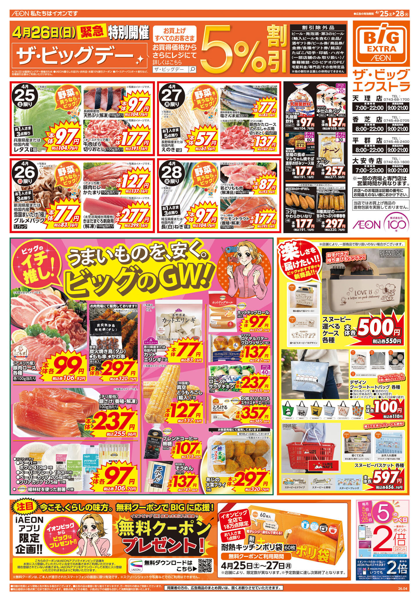 ザ・ビッグエクストラ天理店今週のチラシ(2026年4月27日〜5月3日)