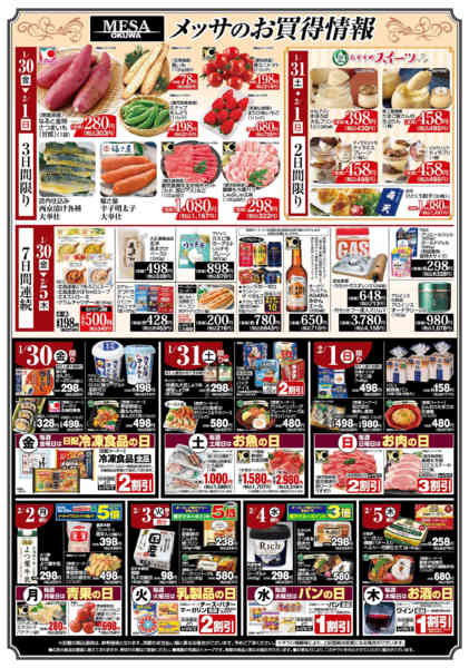 特売やセール情報など最新のチラシを掲載中。(4種類、5枚のチラシを掲載しています)
