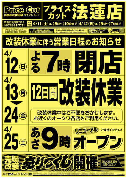 ※「店舗の掲載内容について」チラシガイドに掲載している情報は、独自に調査した内容及びユーザーから頂いた情報を掲載しています。お気づきの点がございましたら「お問い合わせ」よりご連絡ください。また店舗の営業状況、商品に関するお問い合わせは直接店舗事業者にご確認ください。