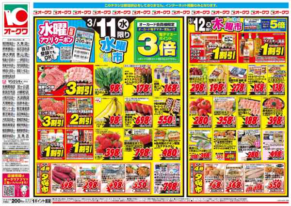 特売やセール情報など最新のチラシを掲載中。(3種類、6枚のチラシを掲載しています)