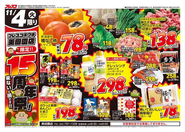 特売やセール情報など最新のチラシを掲載中。(15種類、15枚のチラシを掲載しています)