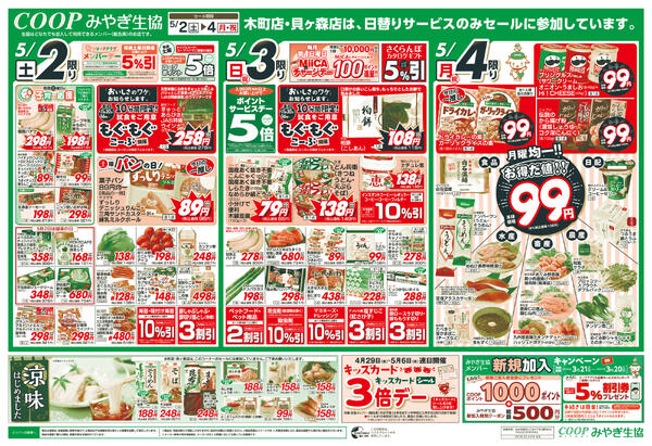 特売やセール情報など最新のチラシを掲載中。(2種類、2枚のチラシを掲載しています)