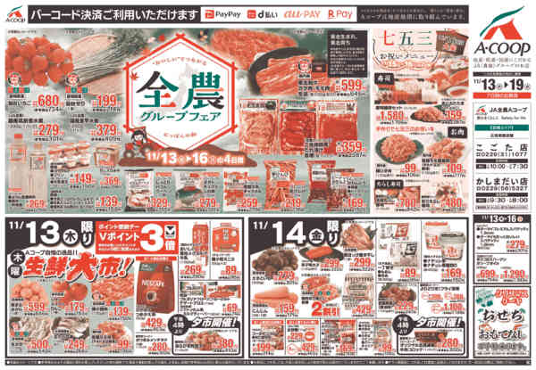 特売やセール情報など最新のチラシを掲載中。(4種類、5枚のチラシを掲載しています)