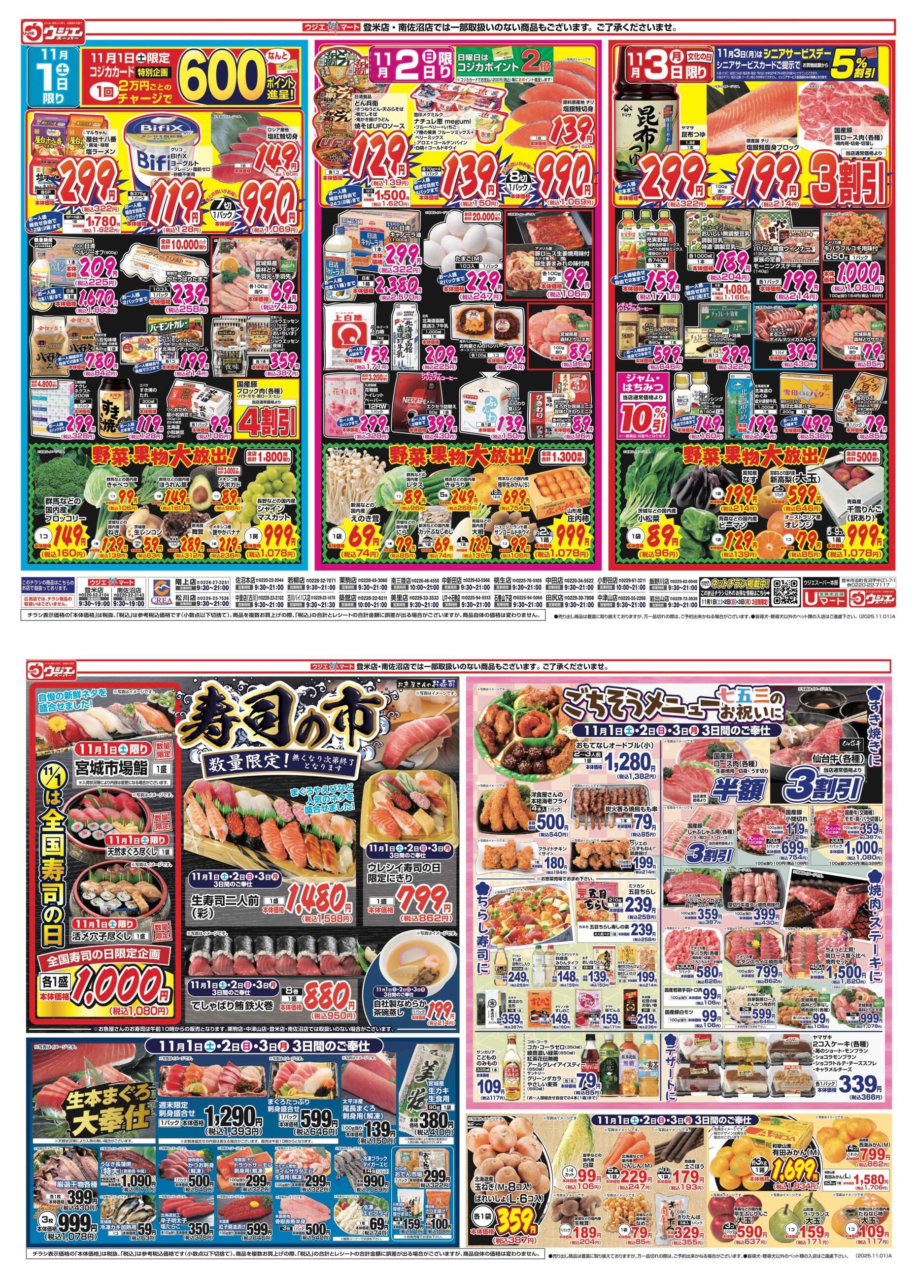 ウジエスーパー古川バイパス店今週のチラシ(2025年11月3日〜11月9日)