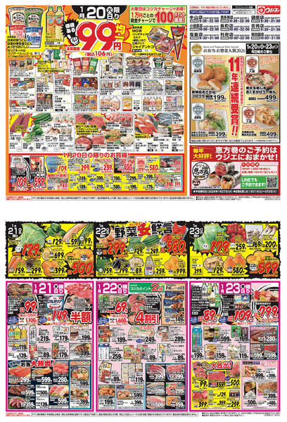 特売やセール情報など最新のチラシを掲載中。(3種類、6枚のチラシを掲載しています)