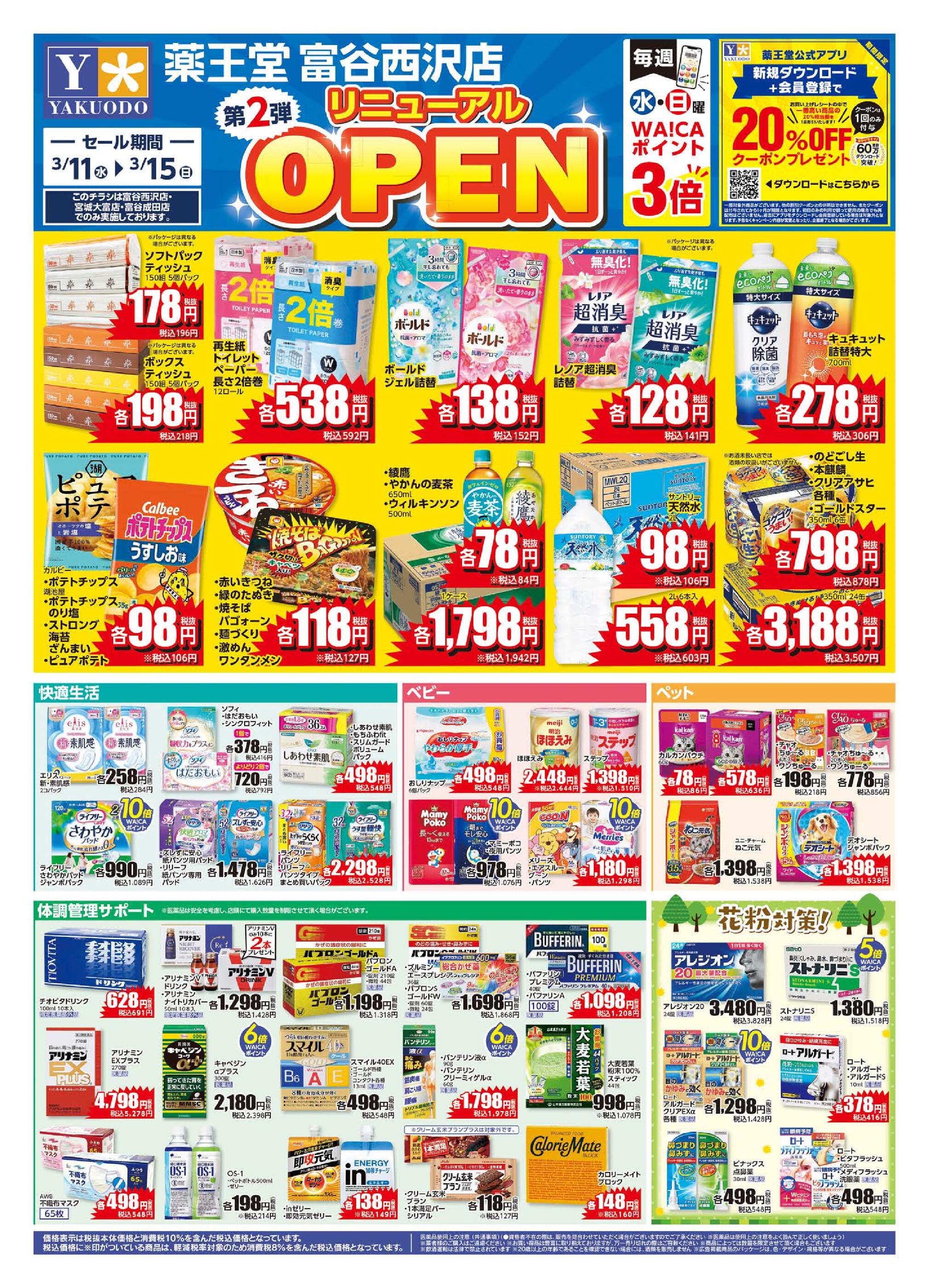 薬王堂富谷西沢店今週のチラシ(2026年3月9日〜3月15日)