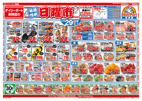 特売やセール情報など最新のチラシを掲載中。(3種類、6枚のチラシを掲載しています)