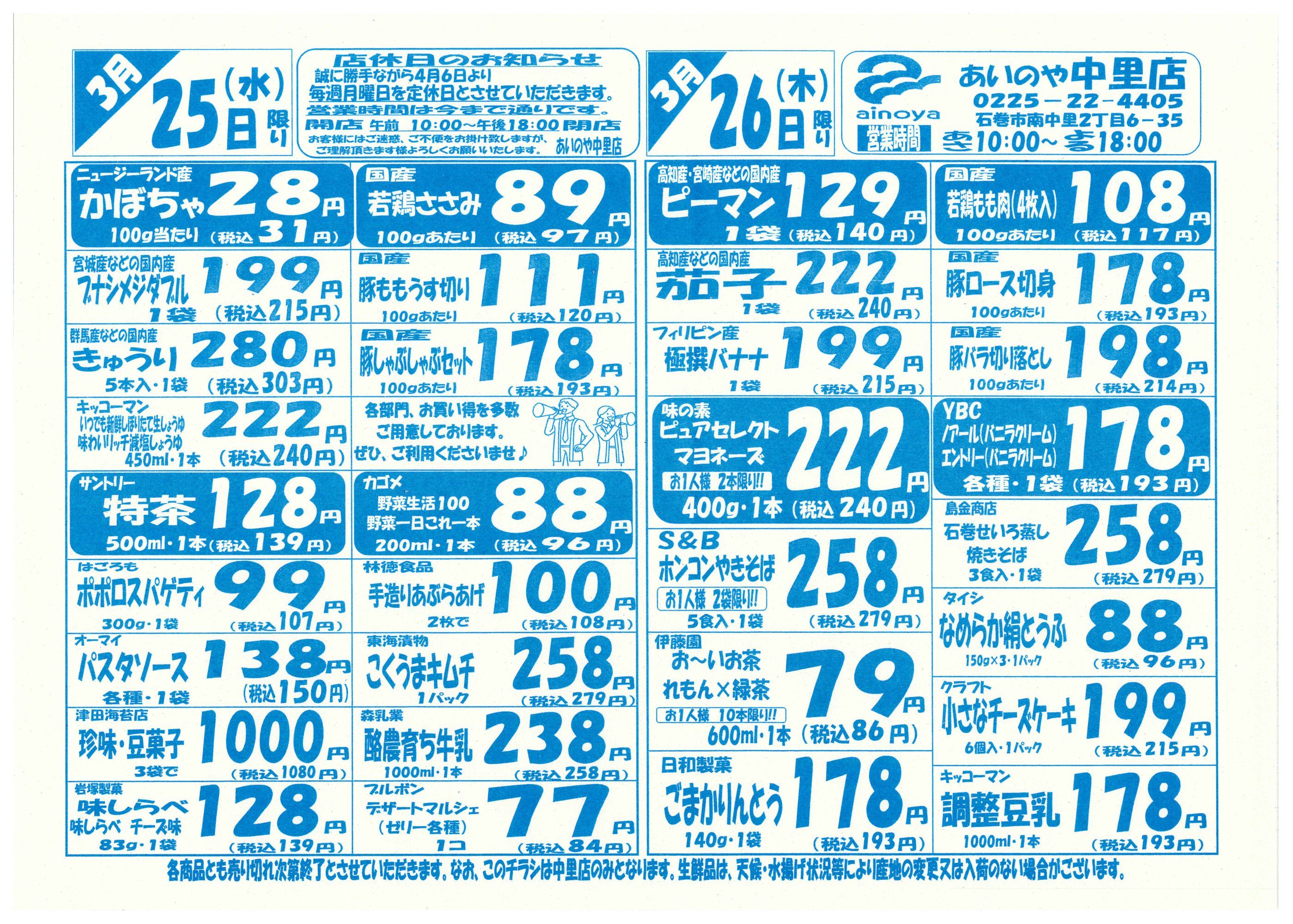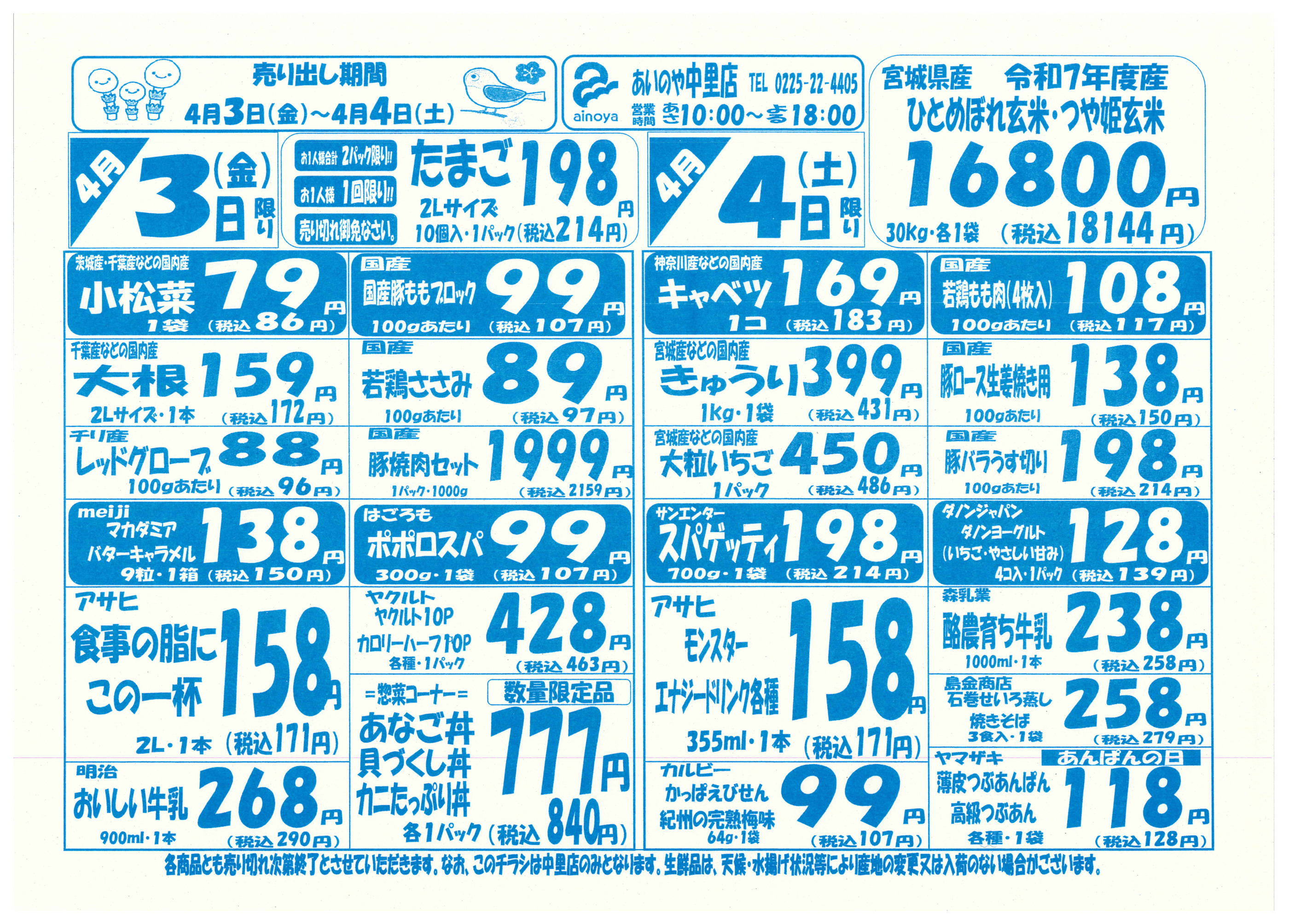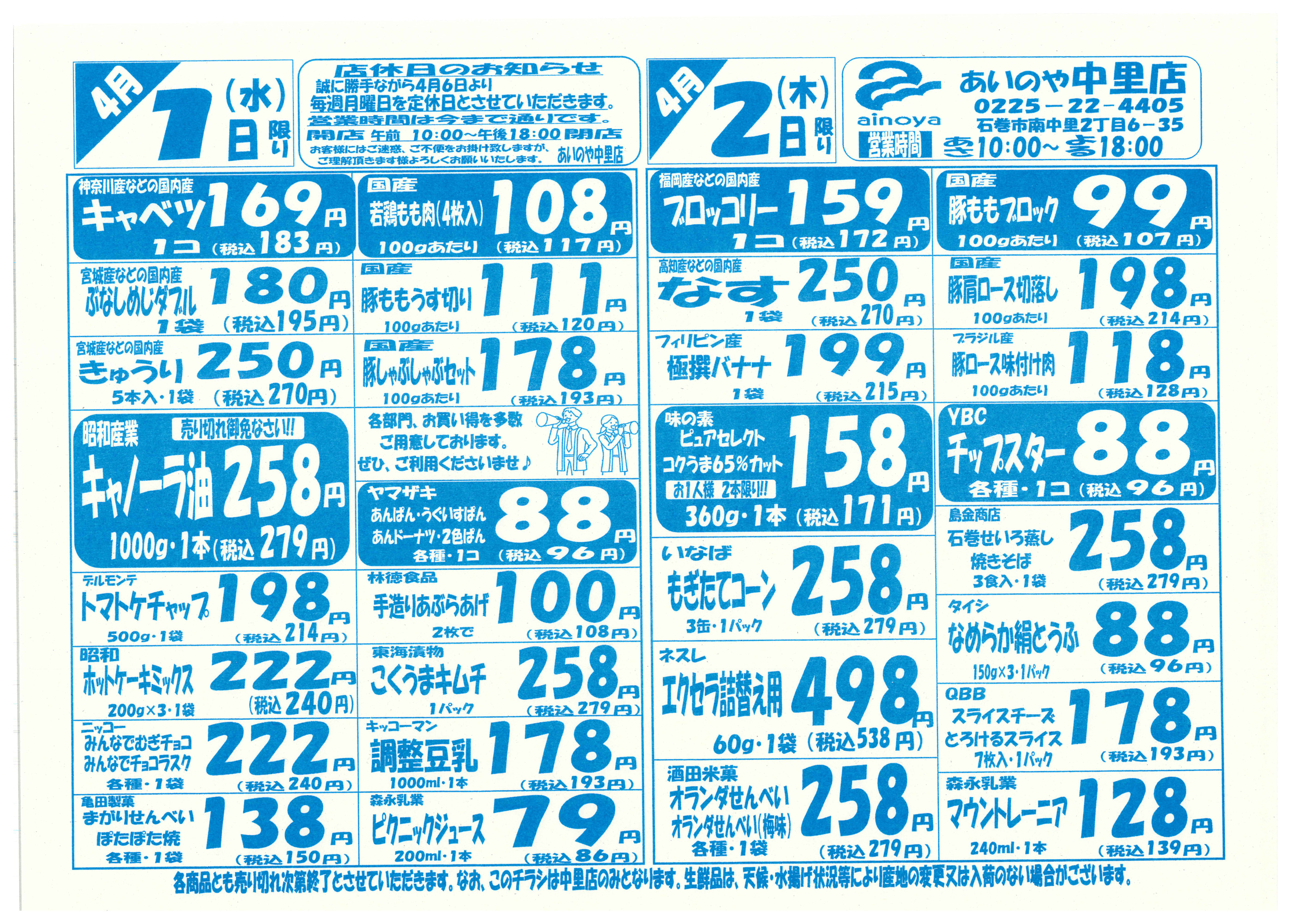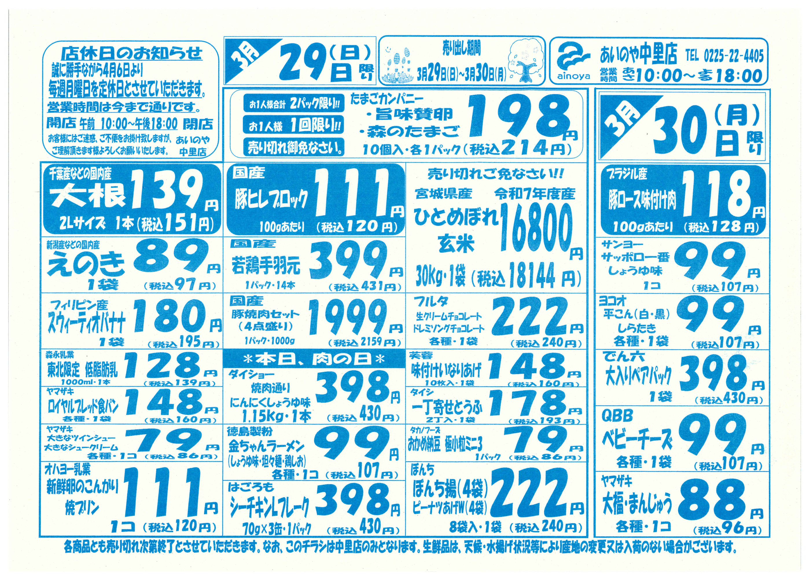 あいのや中里店今週のチラシ(2026年3月30日〜4月5日)