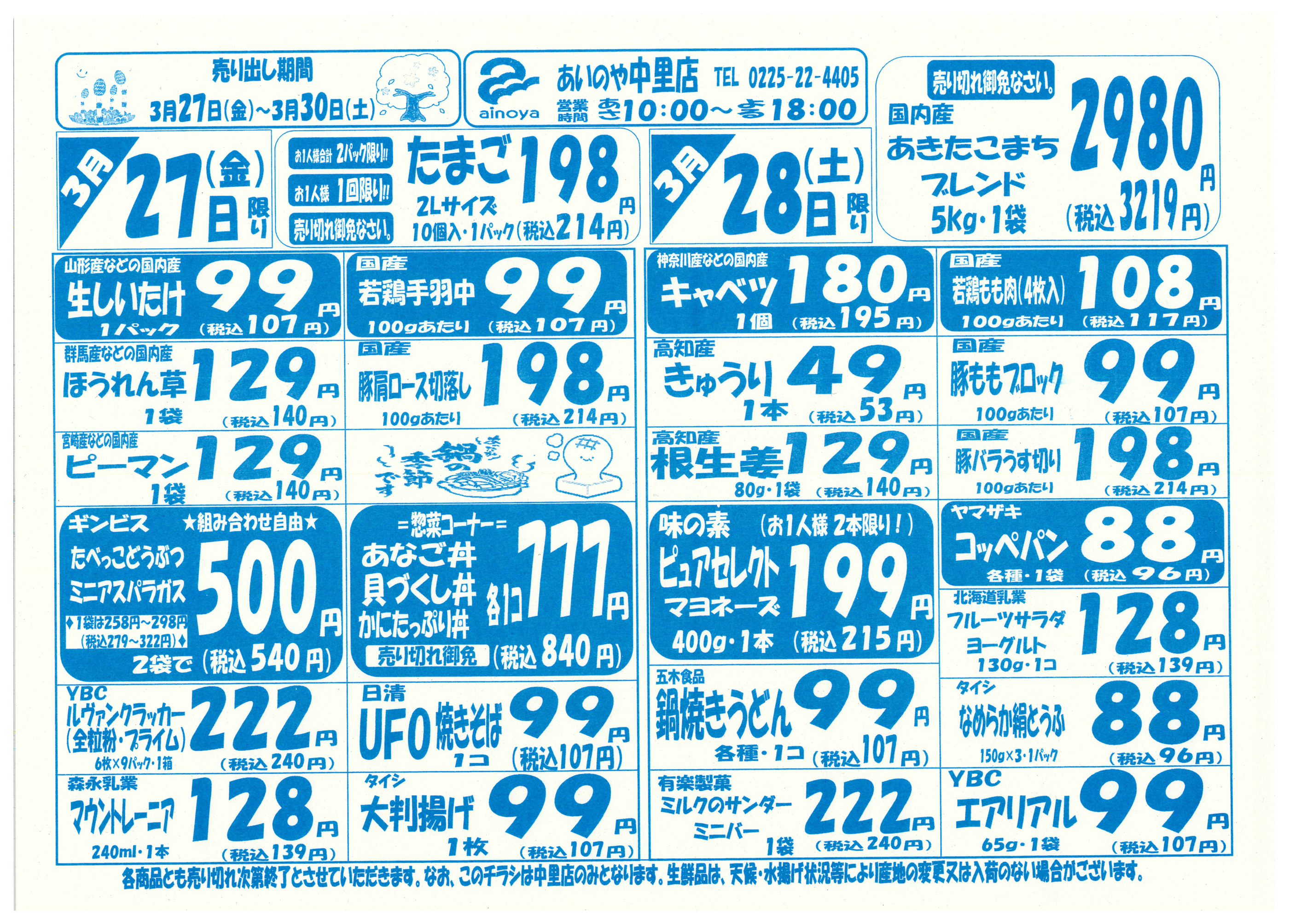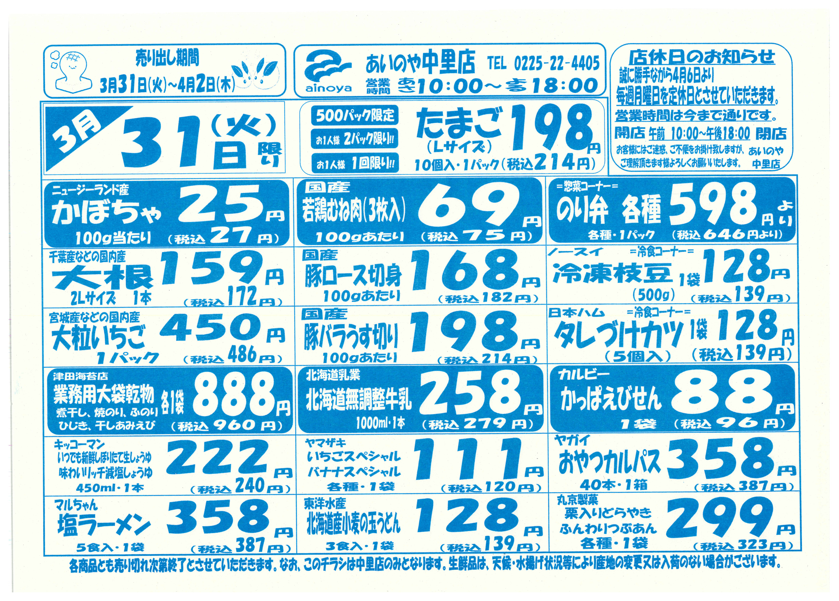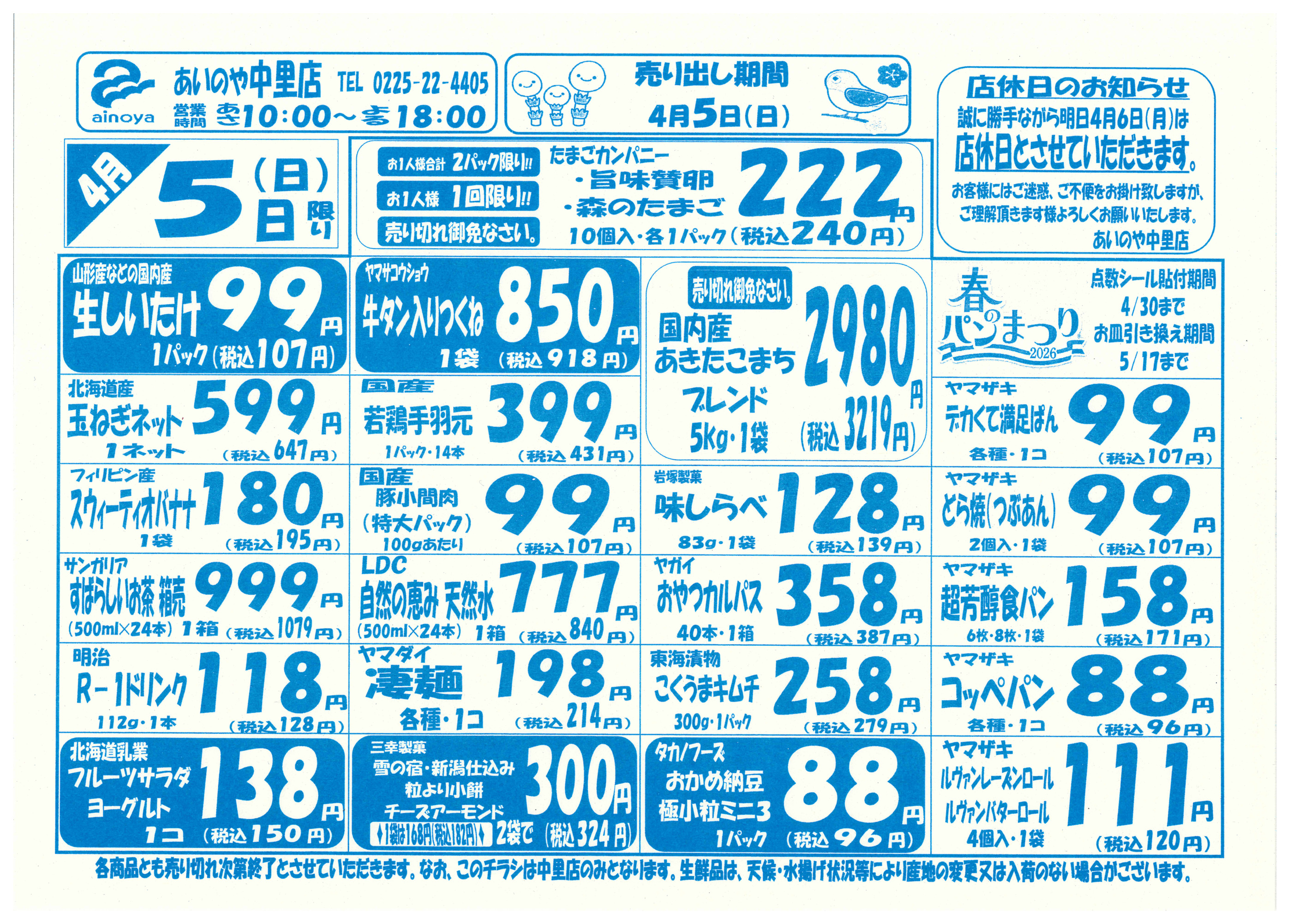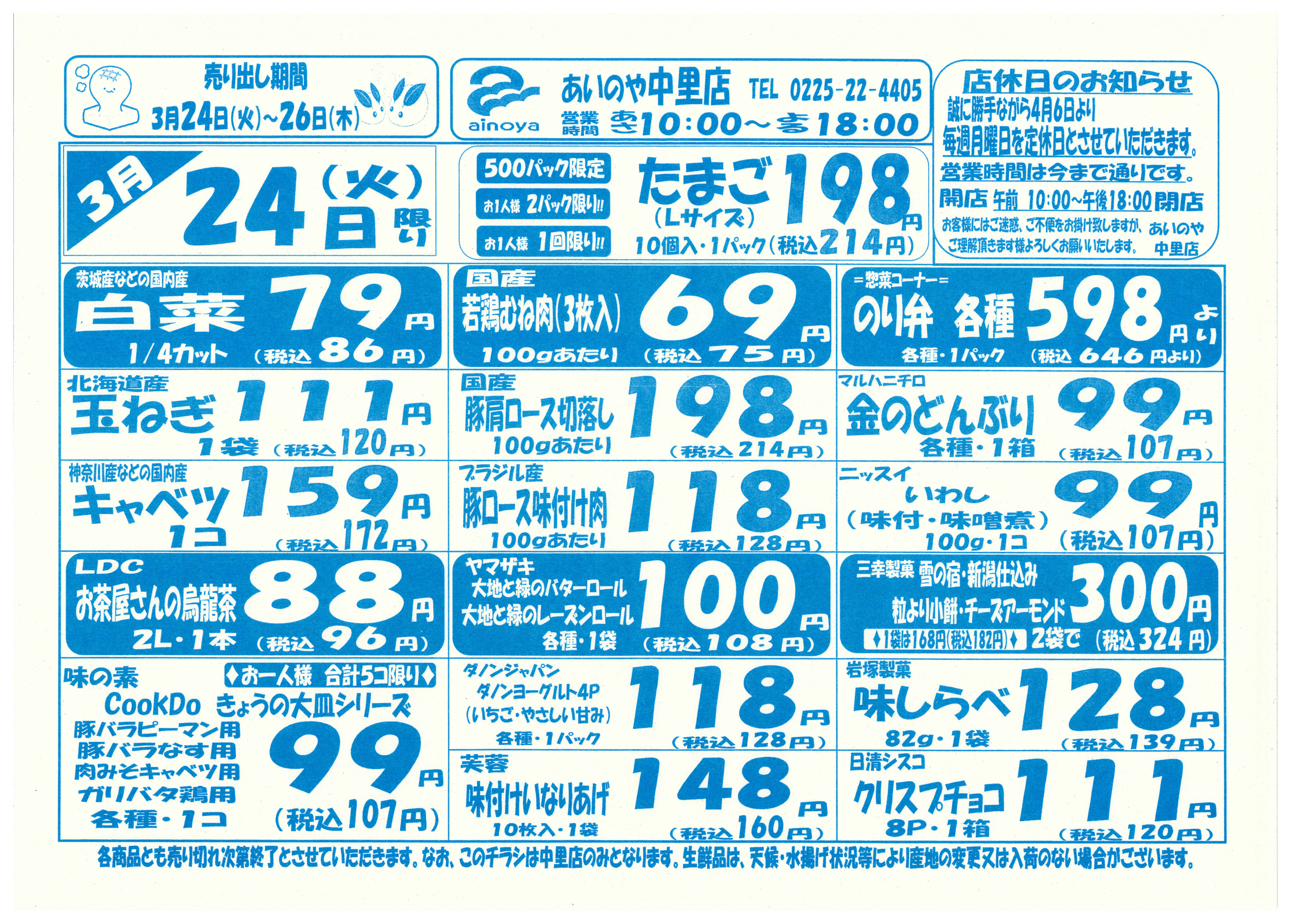 あいのや中里店今週のチラシ(2026年3月30日〜4月5日)