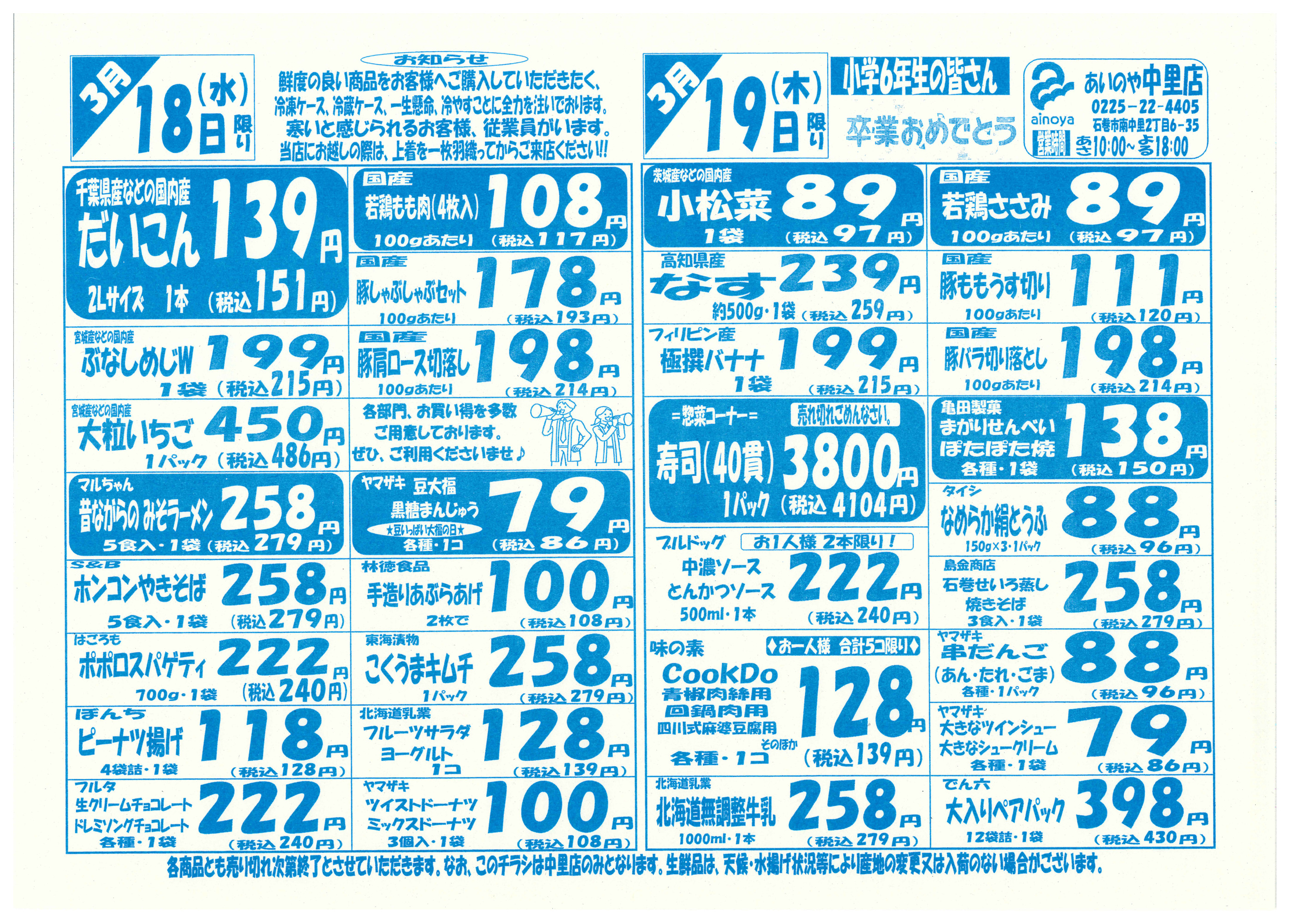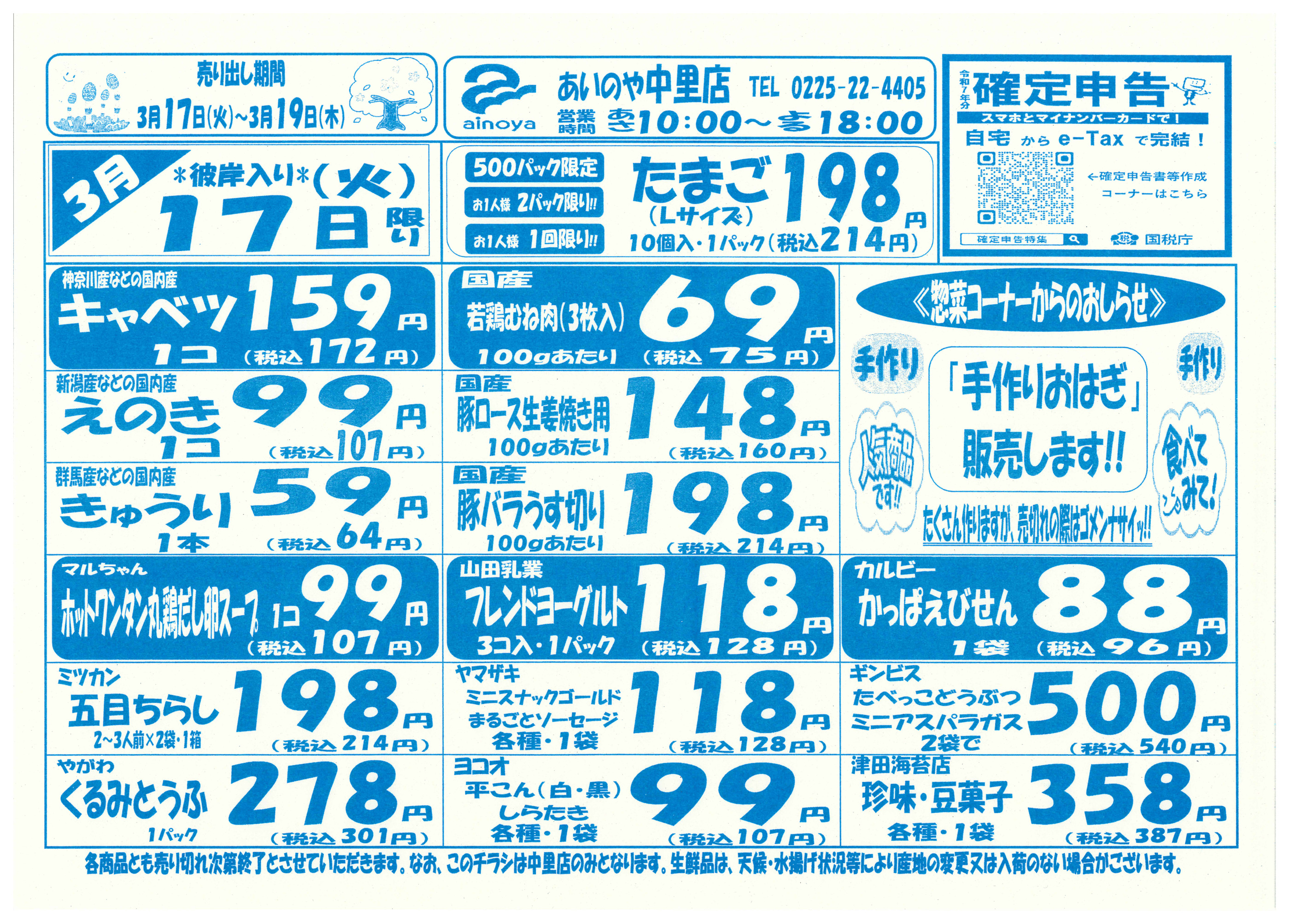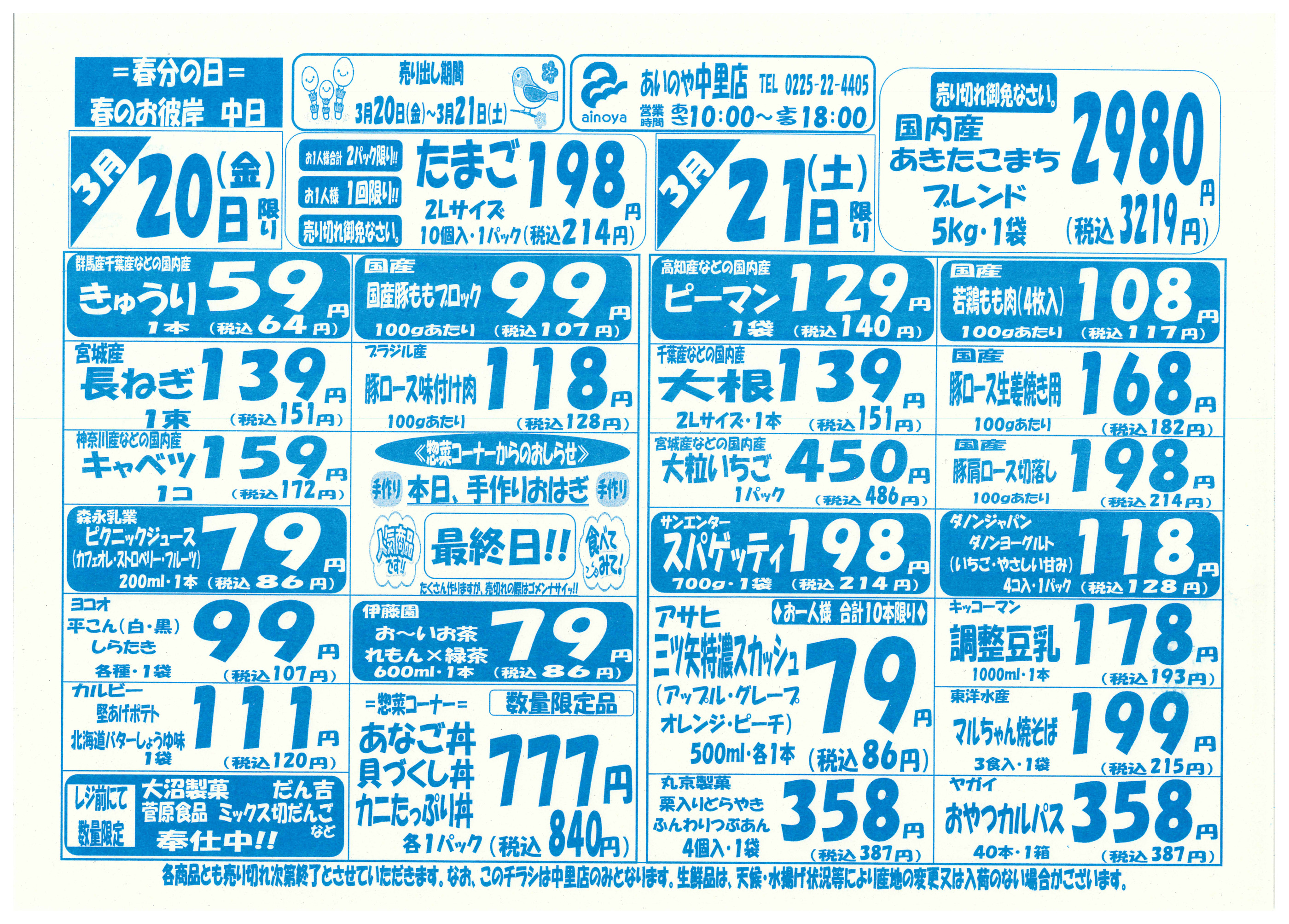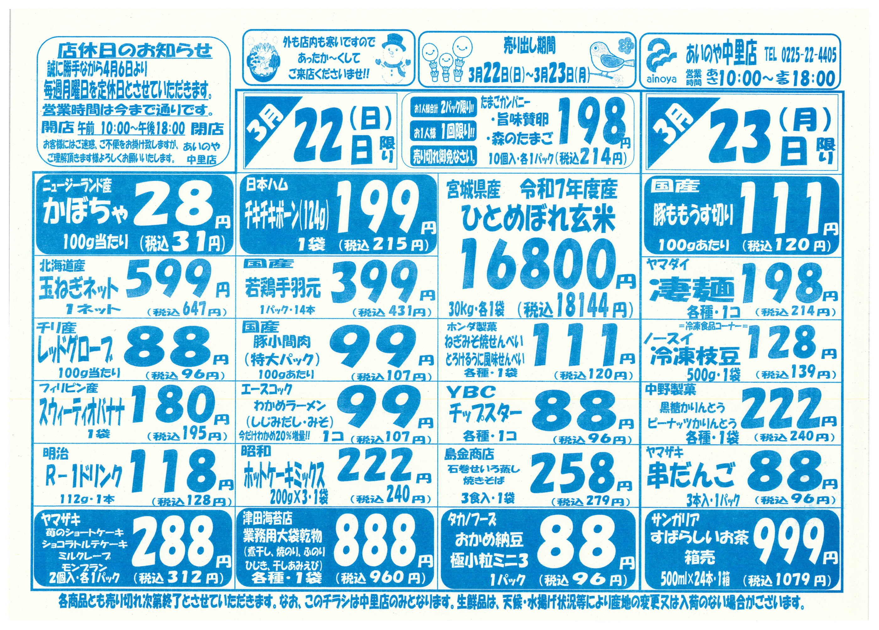 あいのや中里店今週のチラシ(2026年3月30日〜4月5日)