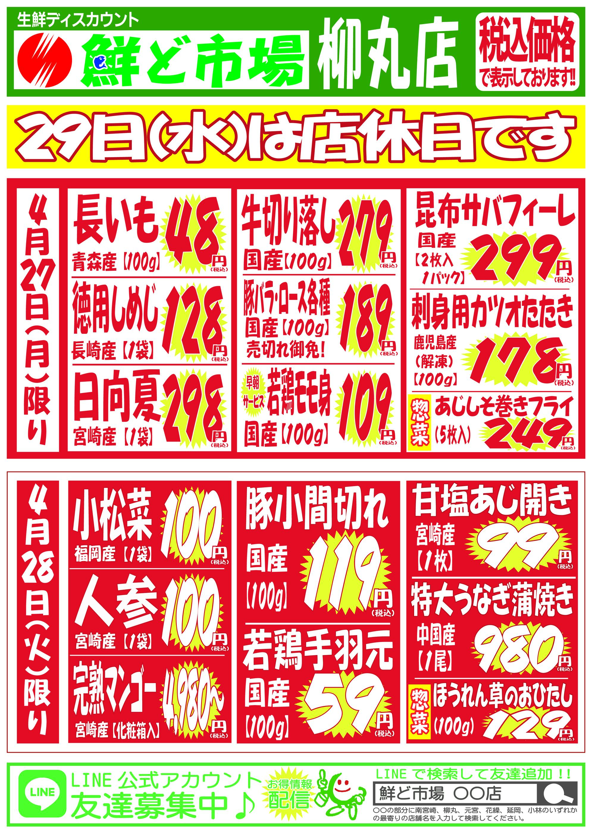 鮮ど市場柳丸店今週のチラシ(2026年4月20日〜4月26日)