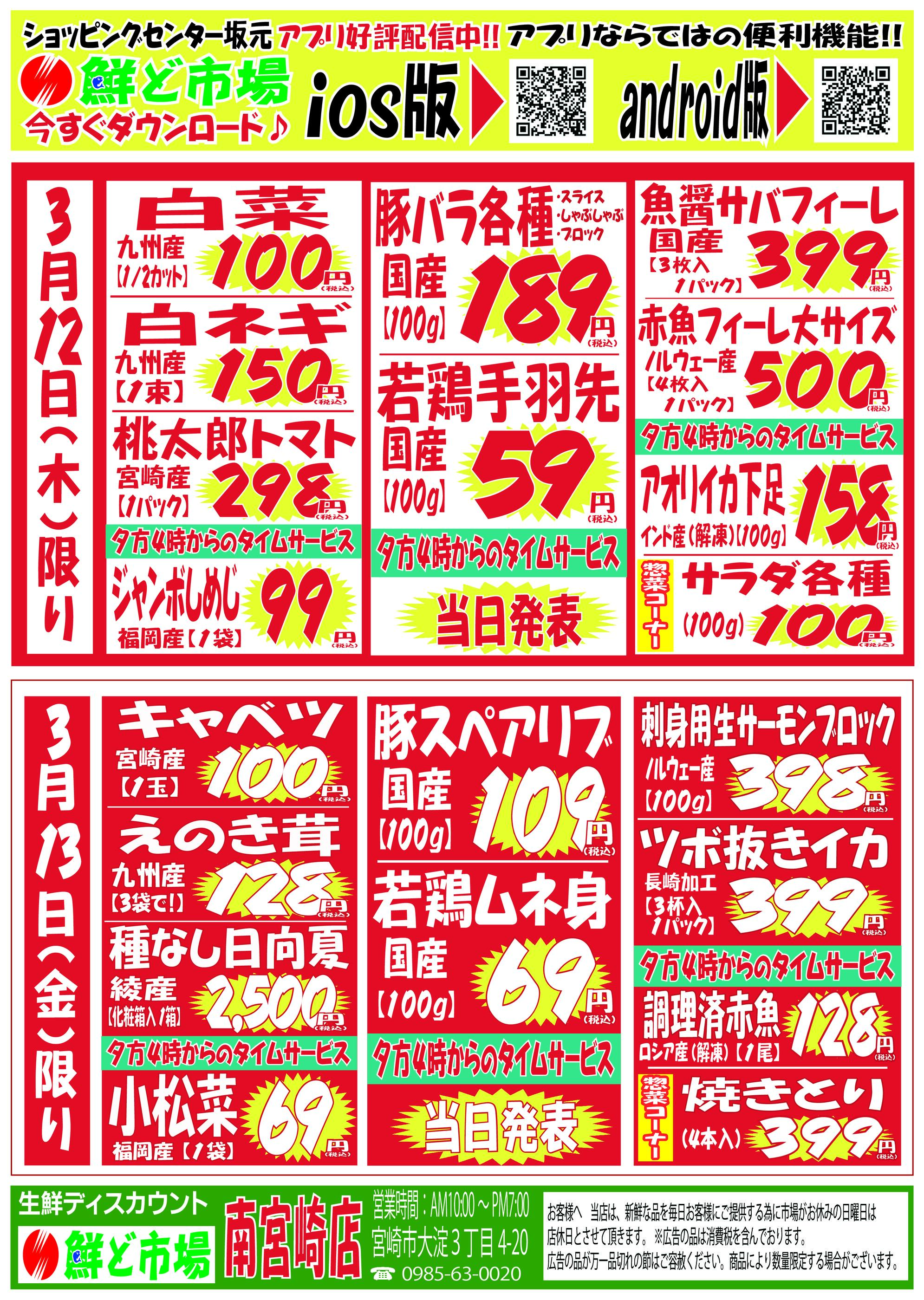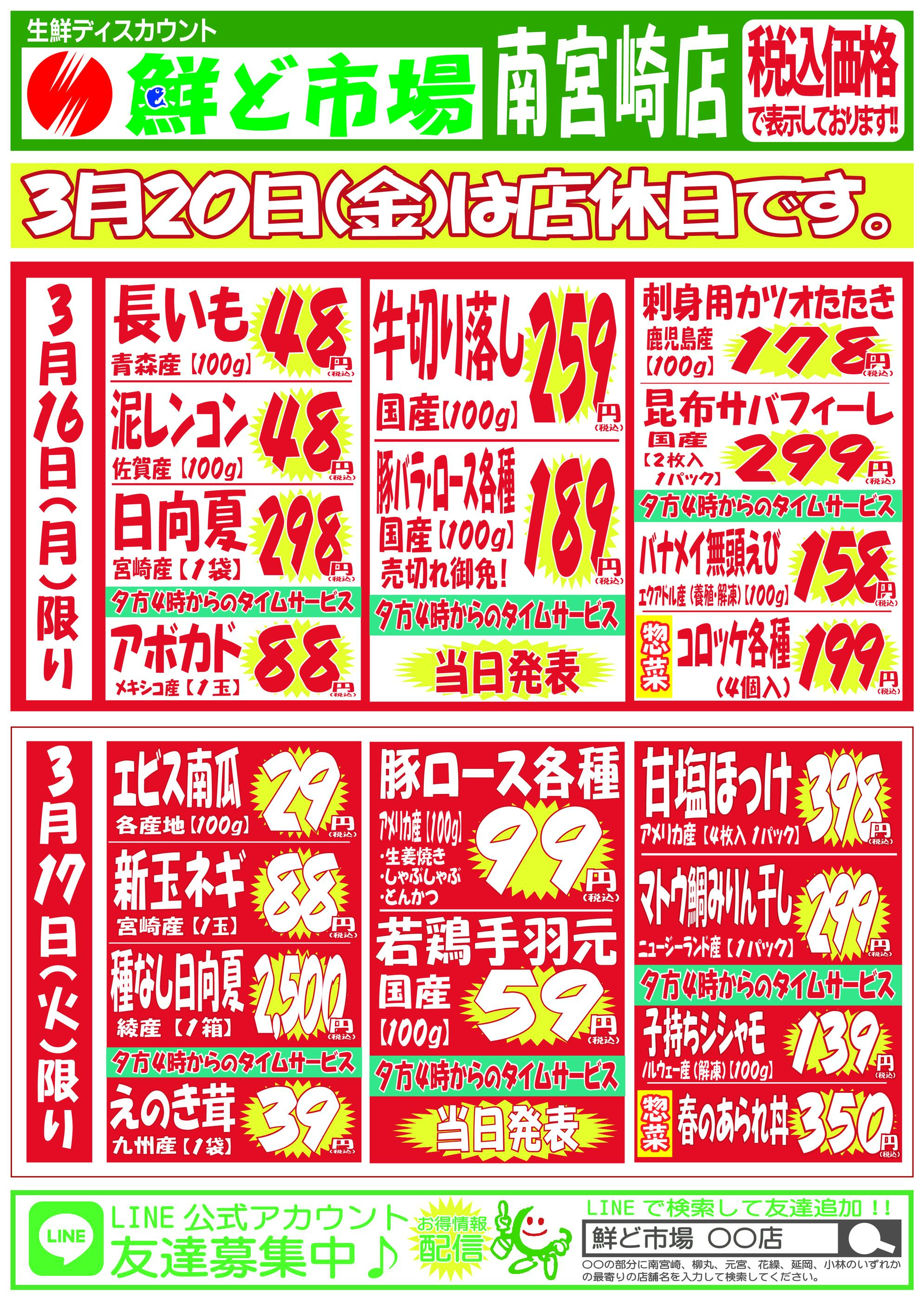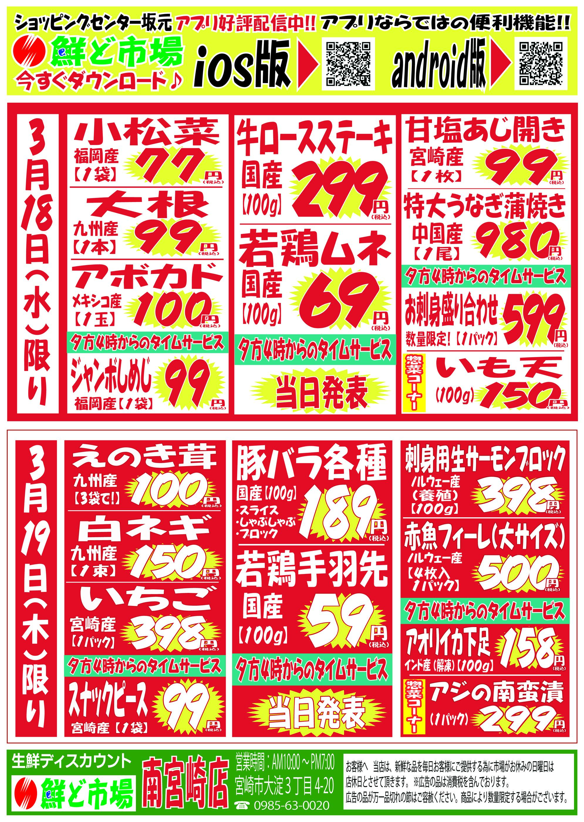 鮮ど市場南宮崎店今週のチラシ(2026年3月16日〜3月22日)