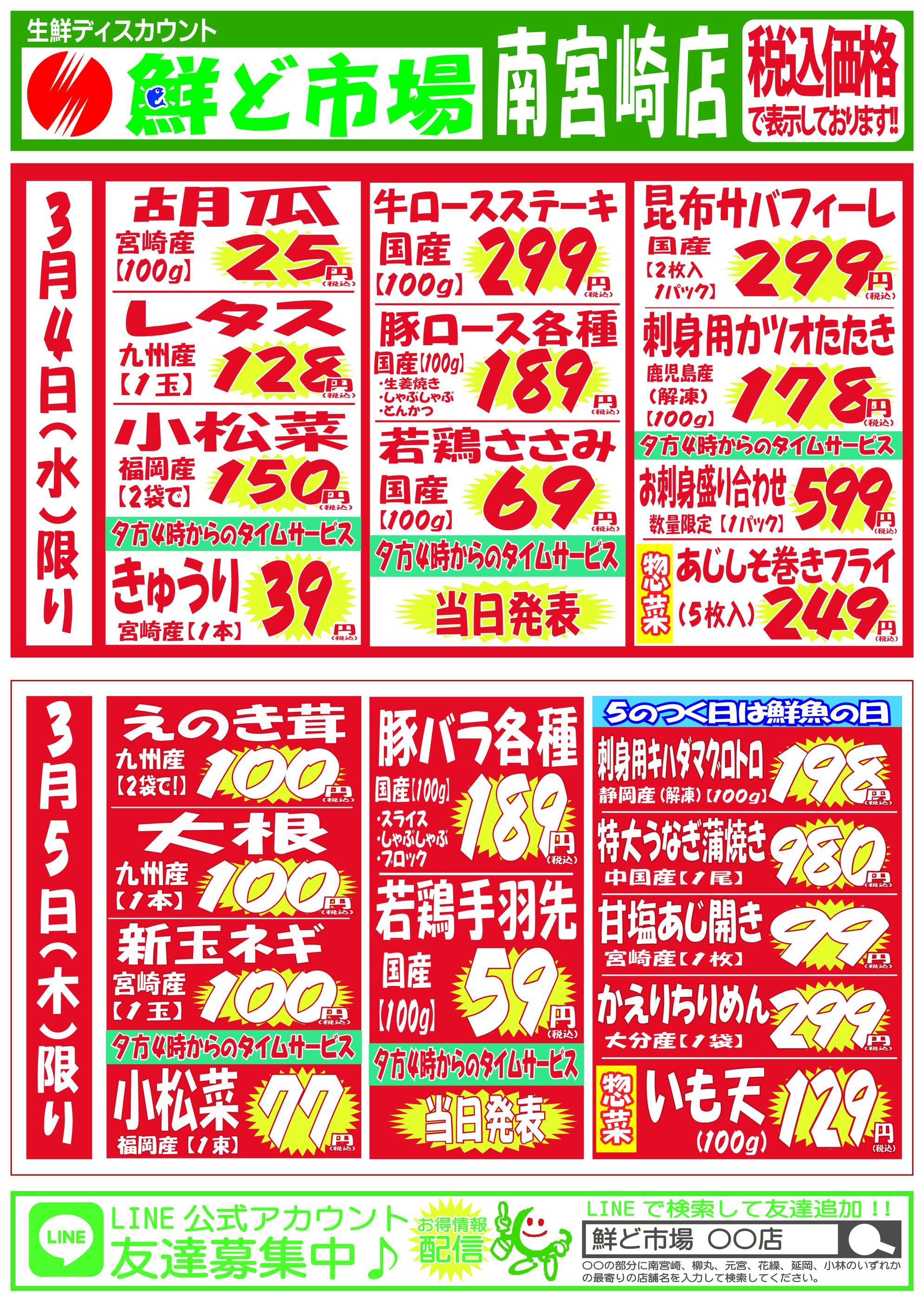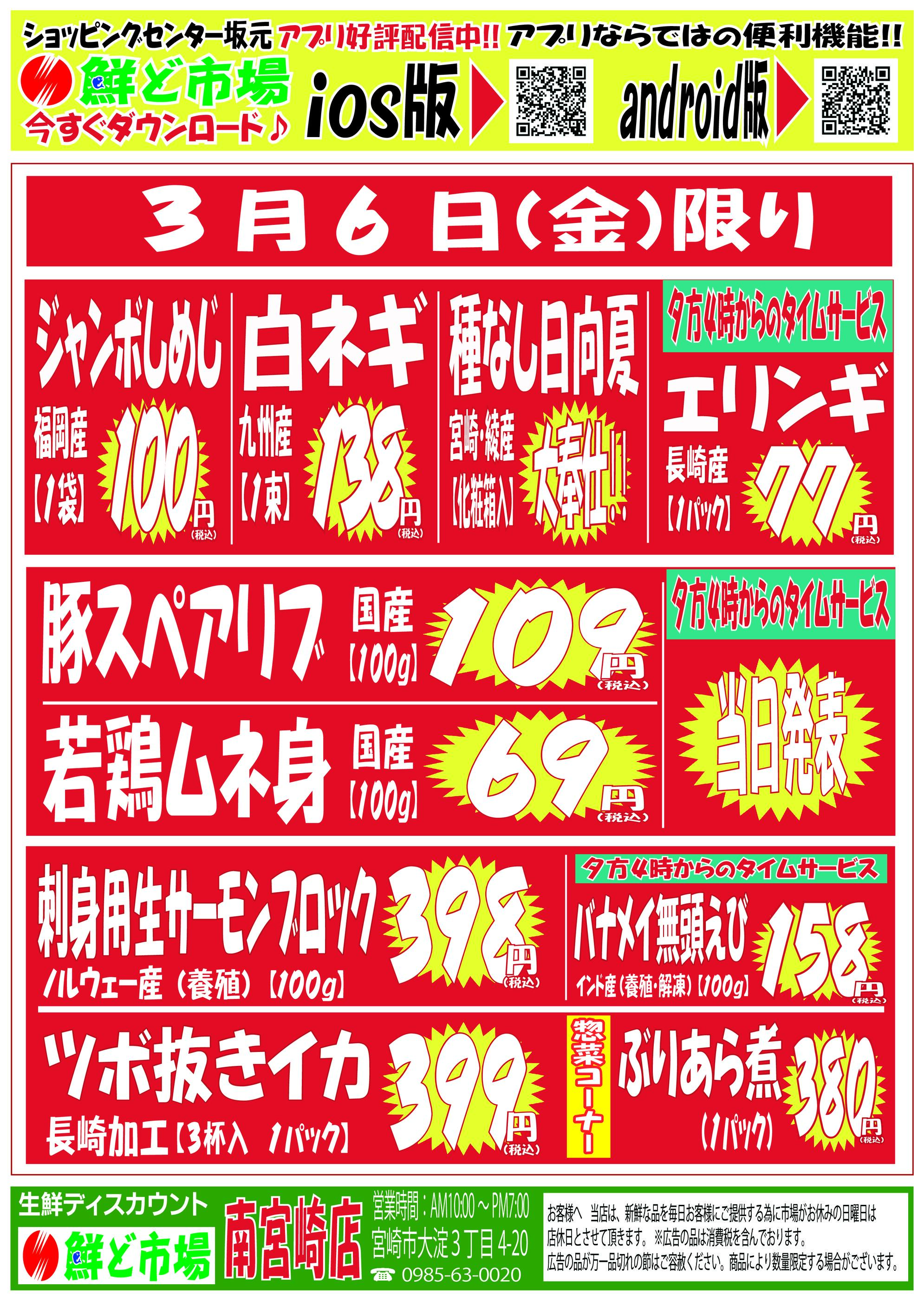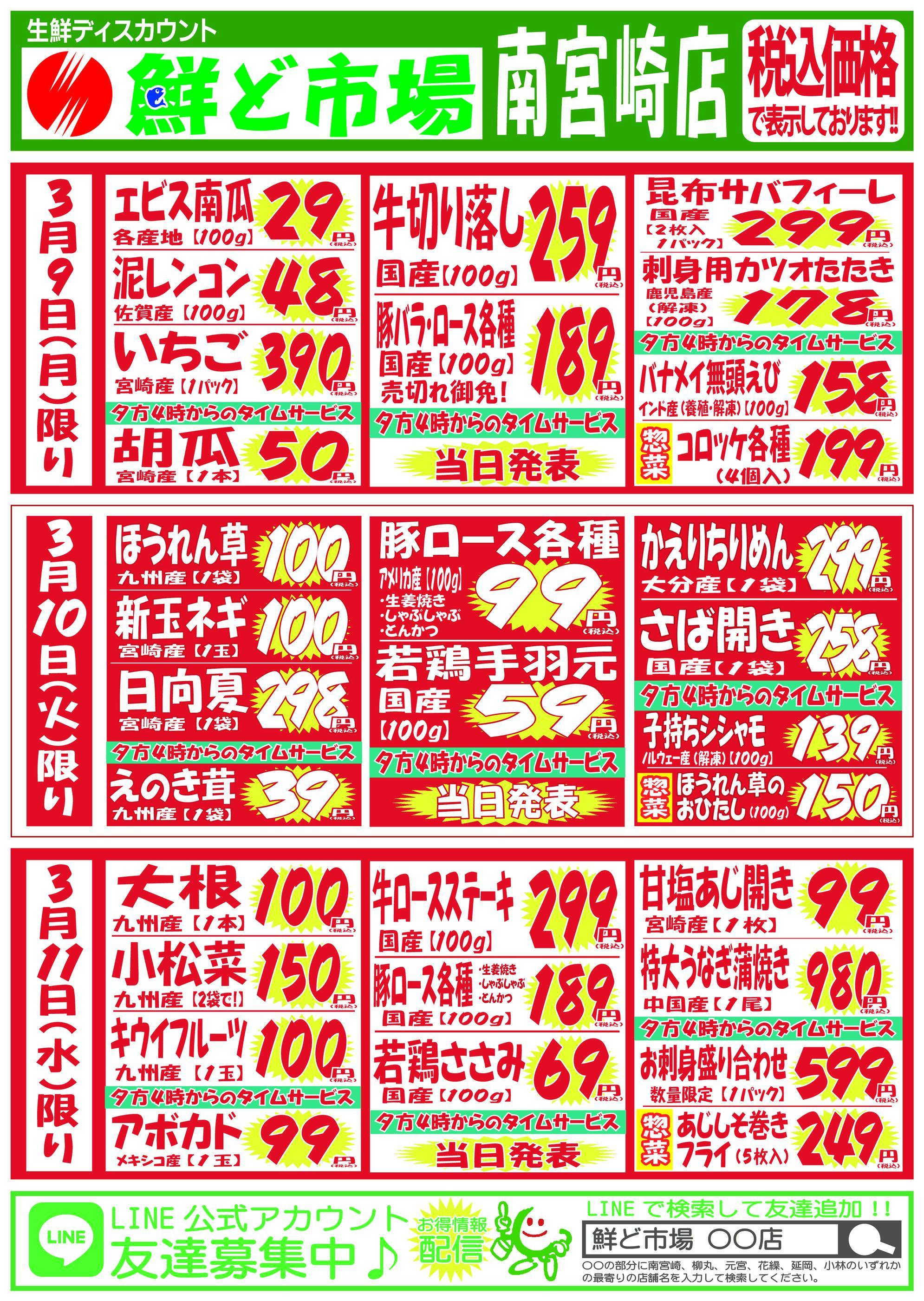 鮮ど市場南宮崎店今週のチラシ(2026年3月16日〜3月22日)