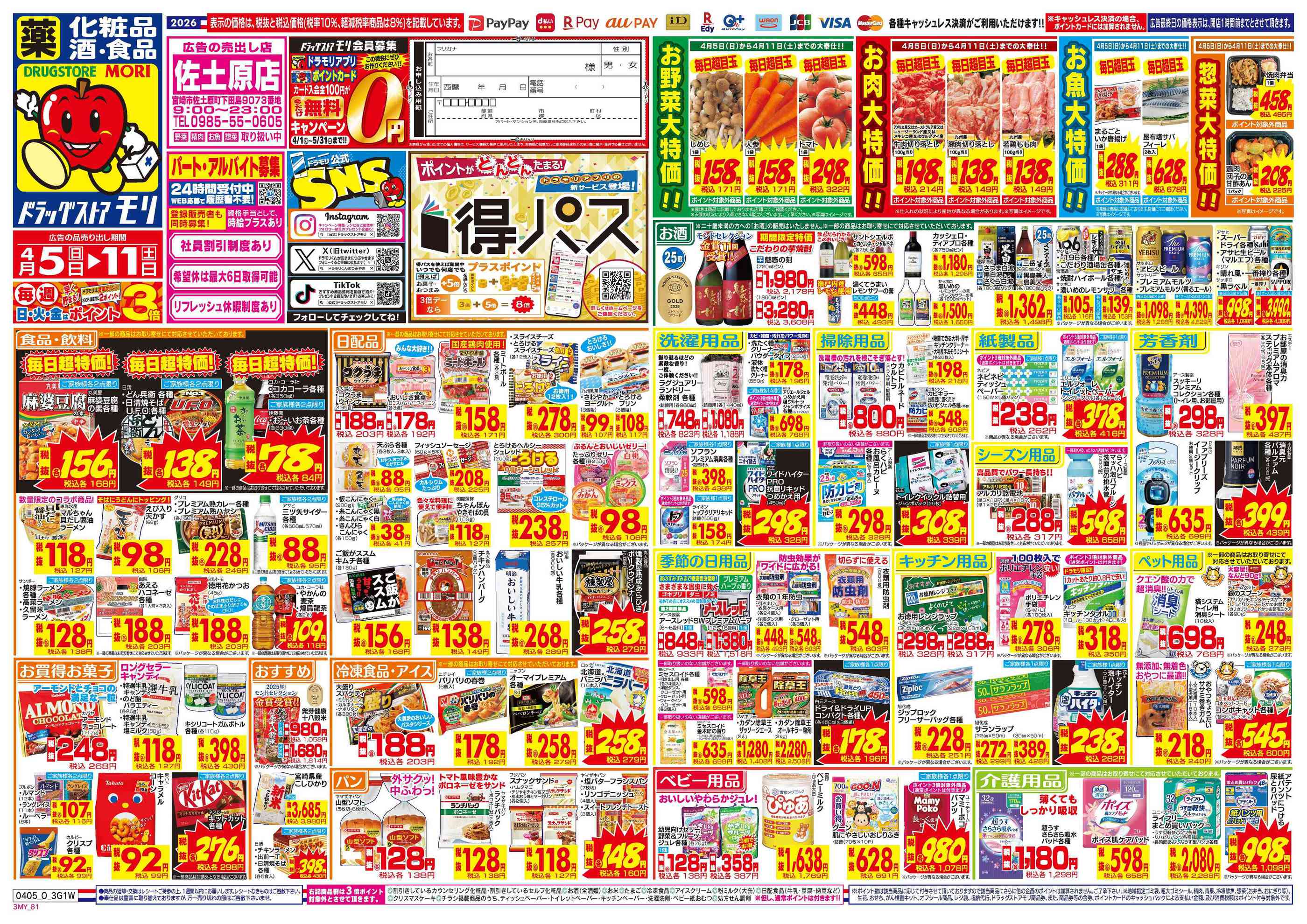 ドラッグストアモリ佐土原店今週のチラシ(2026年3月30日〜4月5日)