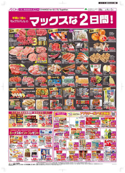 特売やセール情報など最新のチラシを掲載中。(4種類、8枚のチラシを掲載しています)