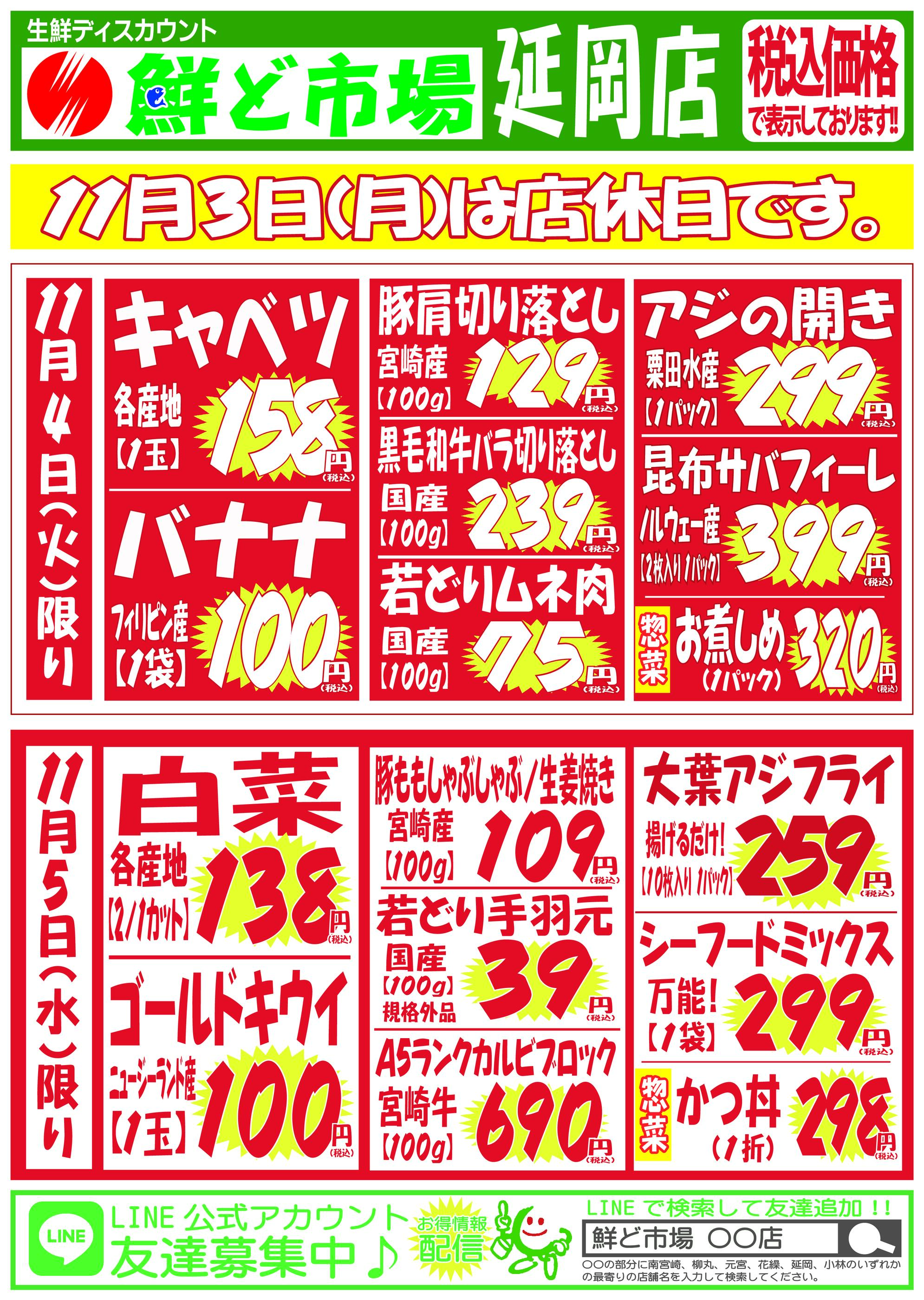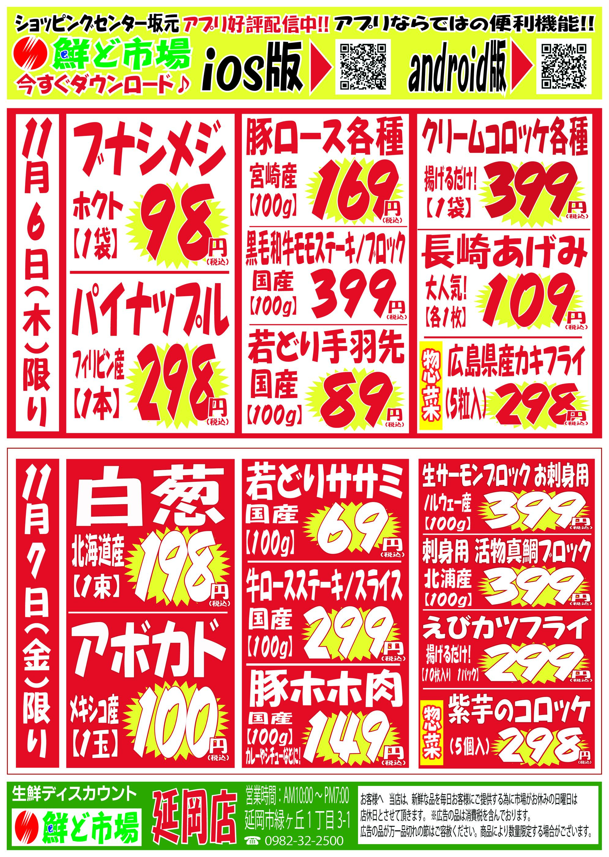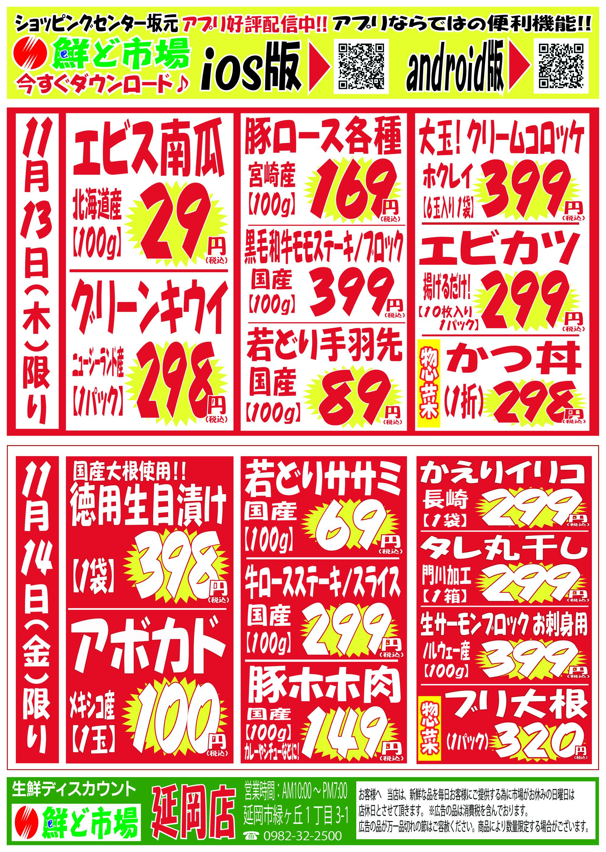 鮮ど市場延岡店今週のチラシ(2025年11月10日〜11月16日)