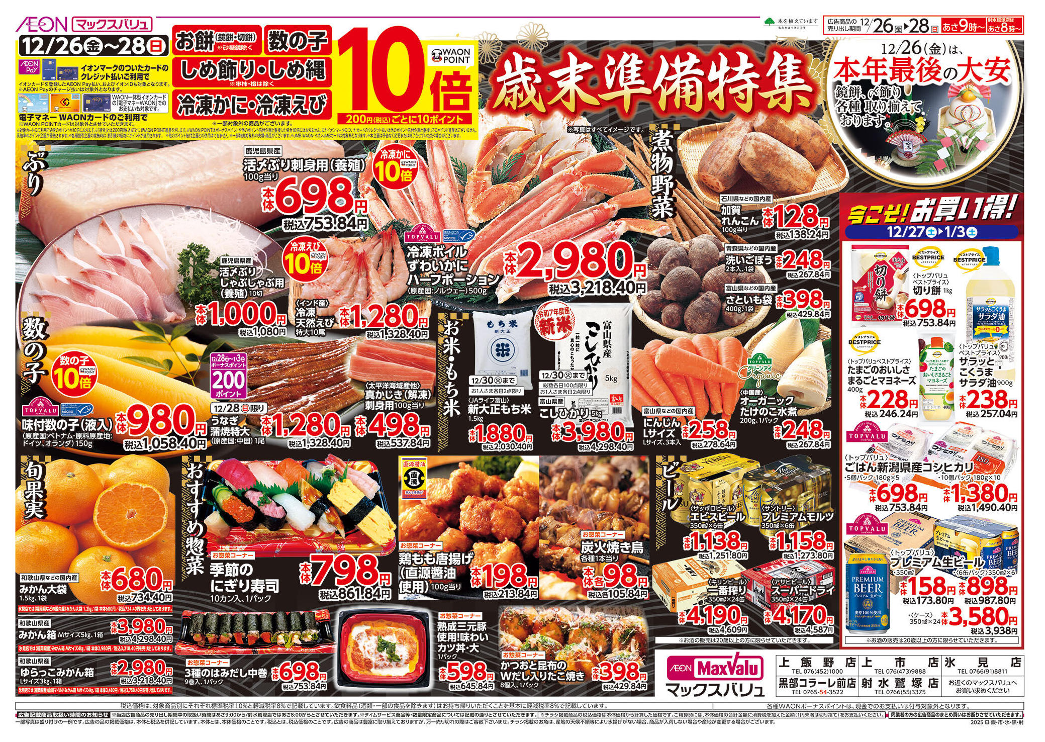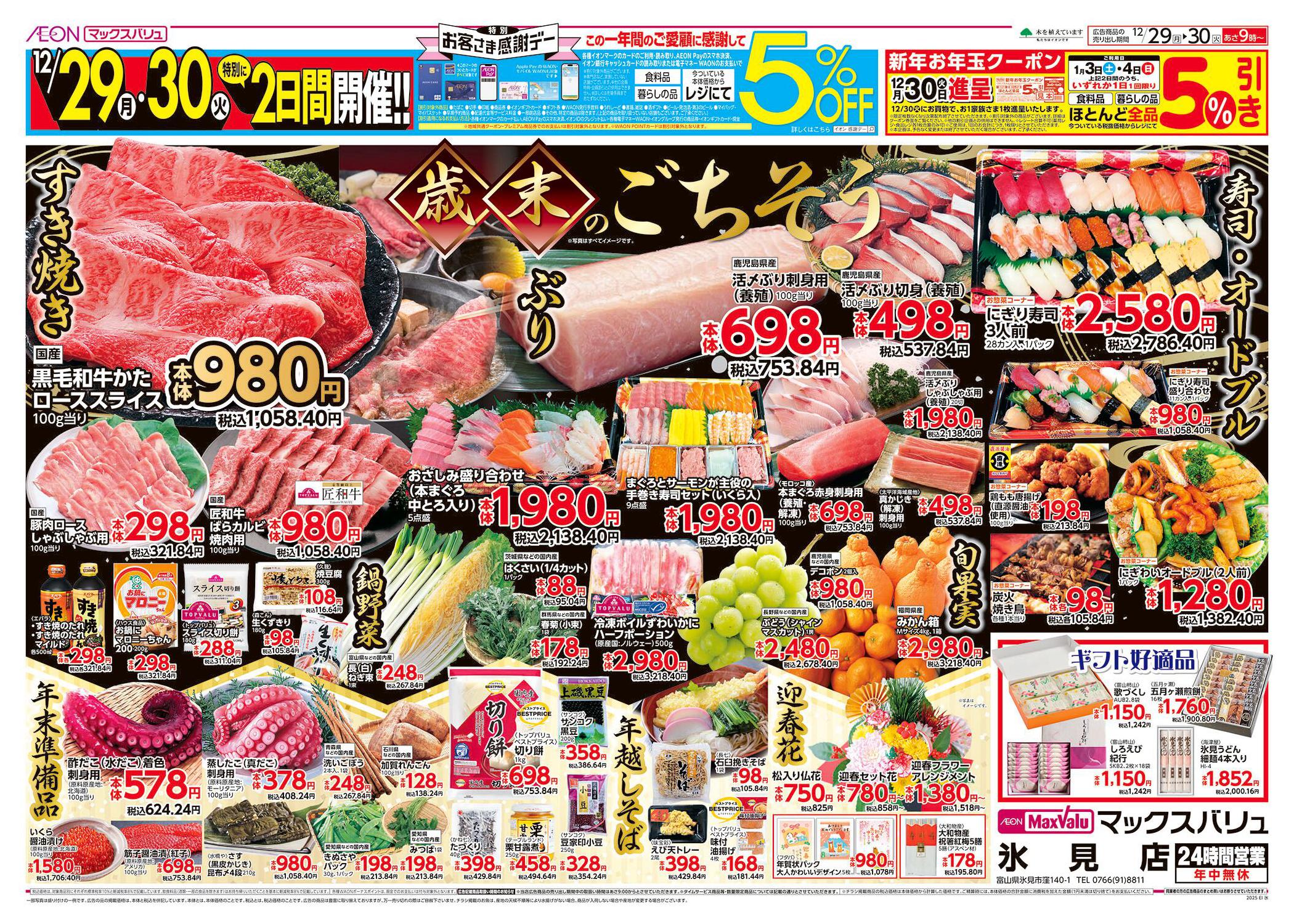 マックスバリュ氷見店今週のチラシ(2025年12月22日〜12月28日)