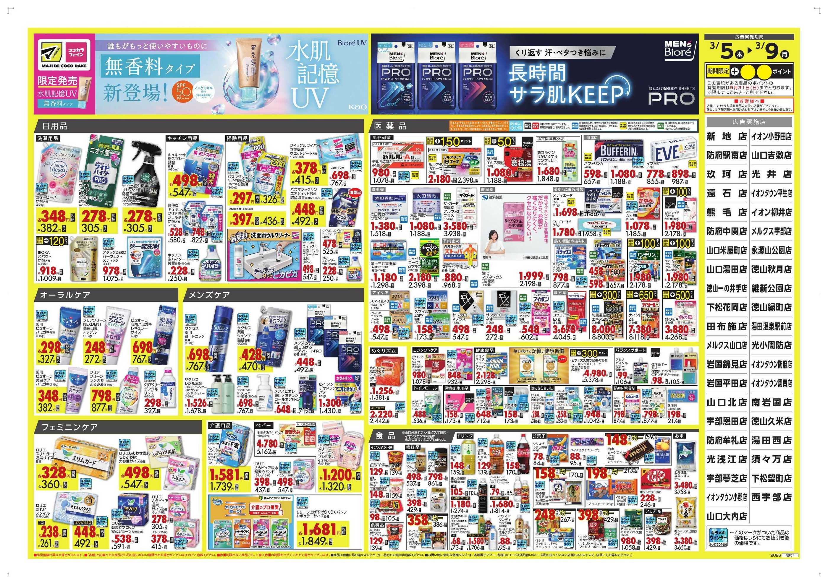 クスリ岩崎チェーン山口大内店今週のチラシ(2026年3月9日〜3月15日)