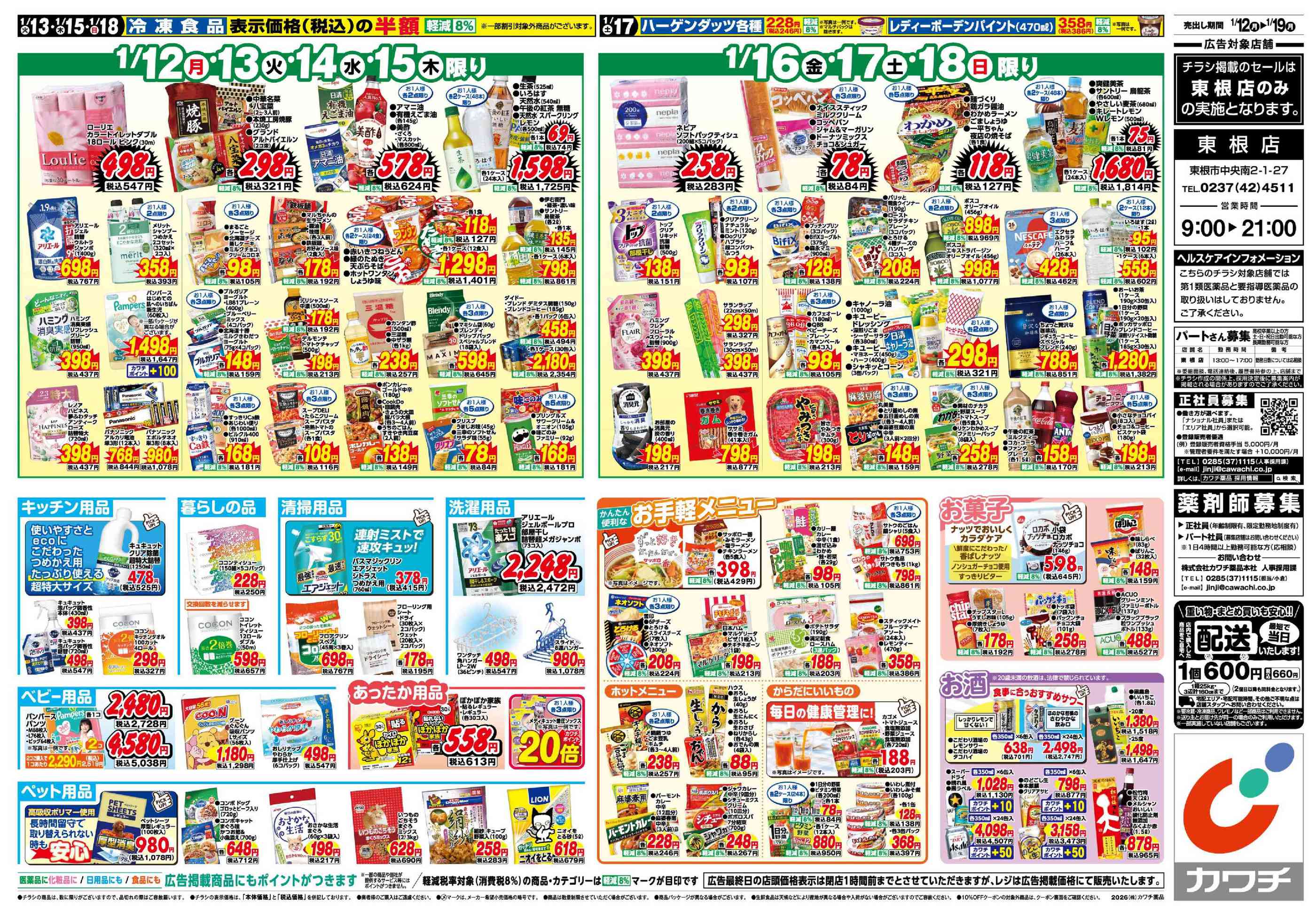 カワチ薬品東根店今週のチラシ(2026年1月12日〜1月18日)