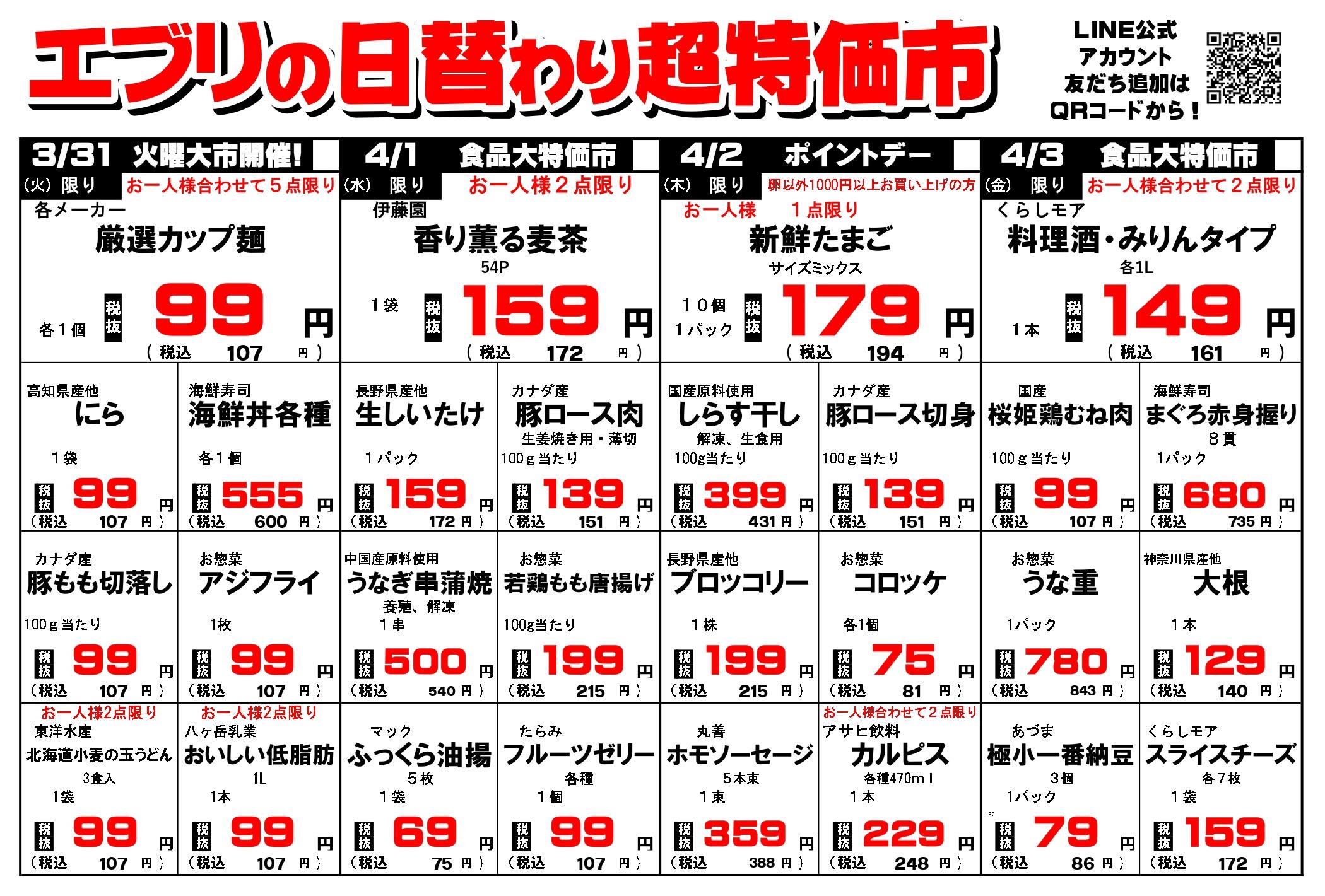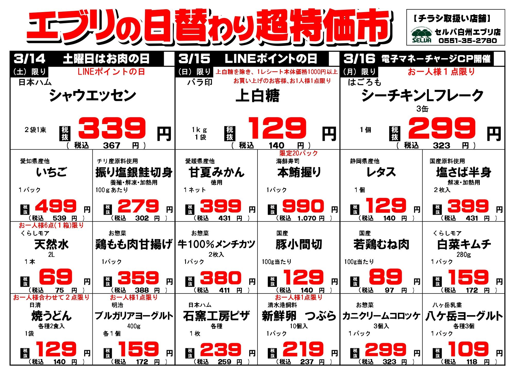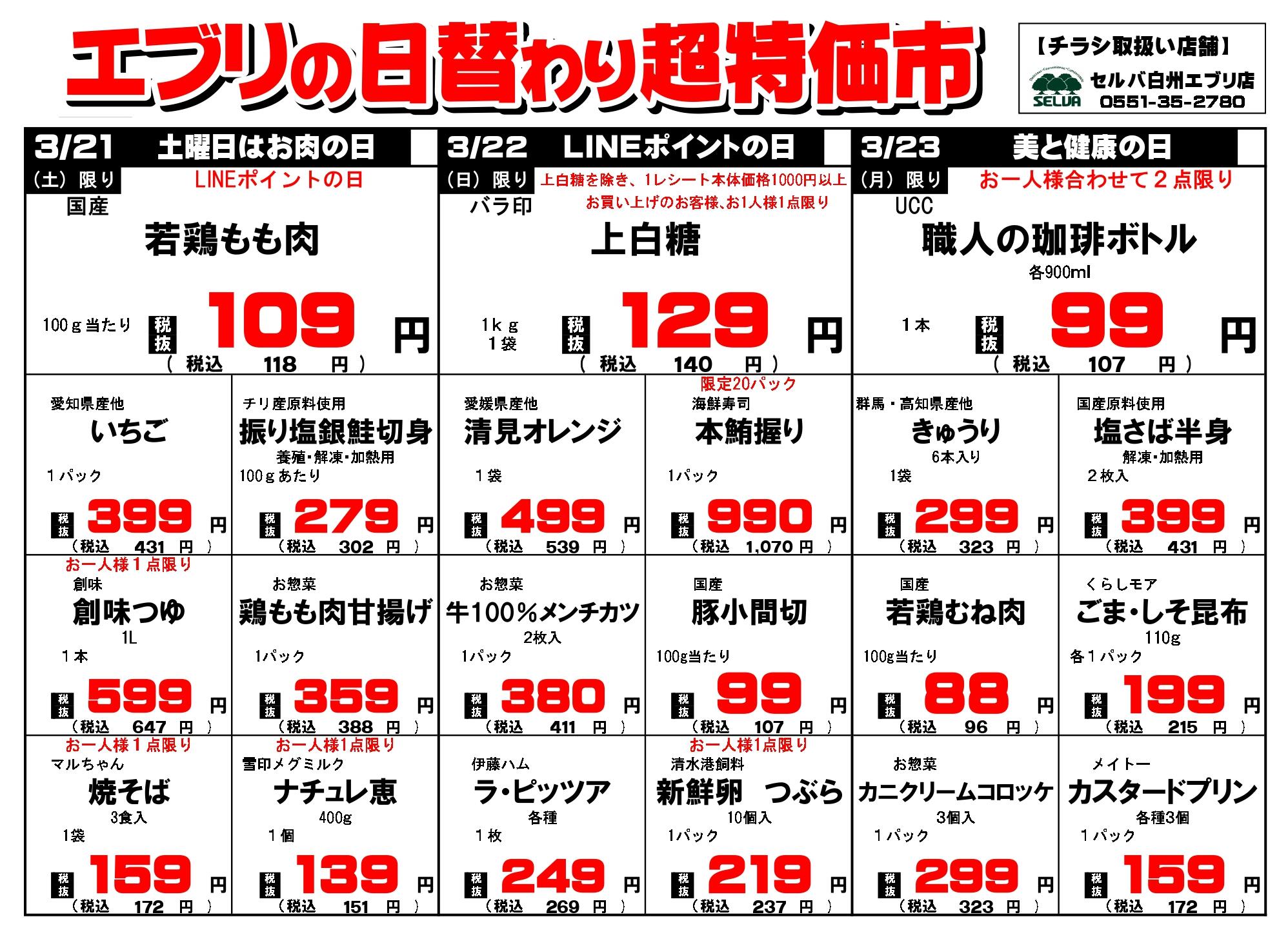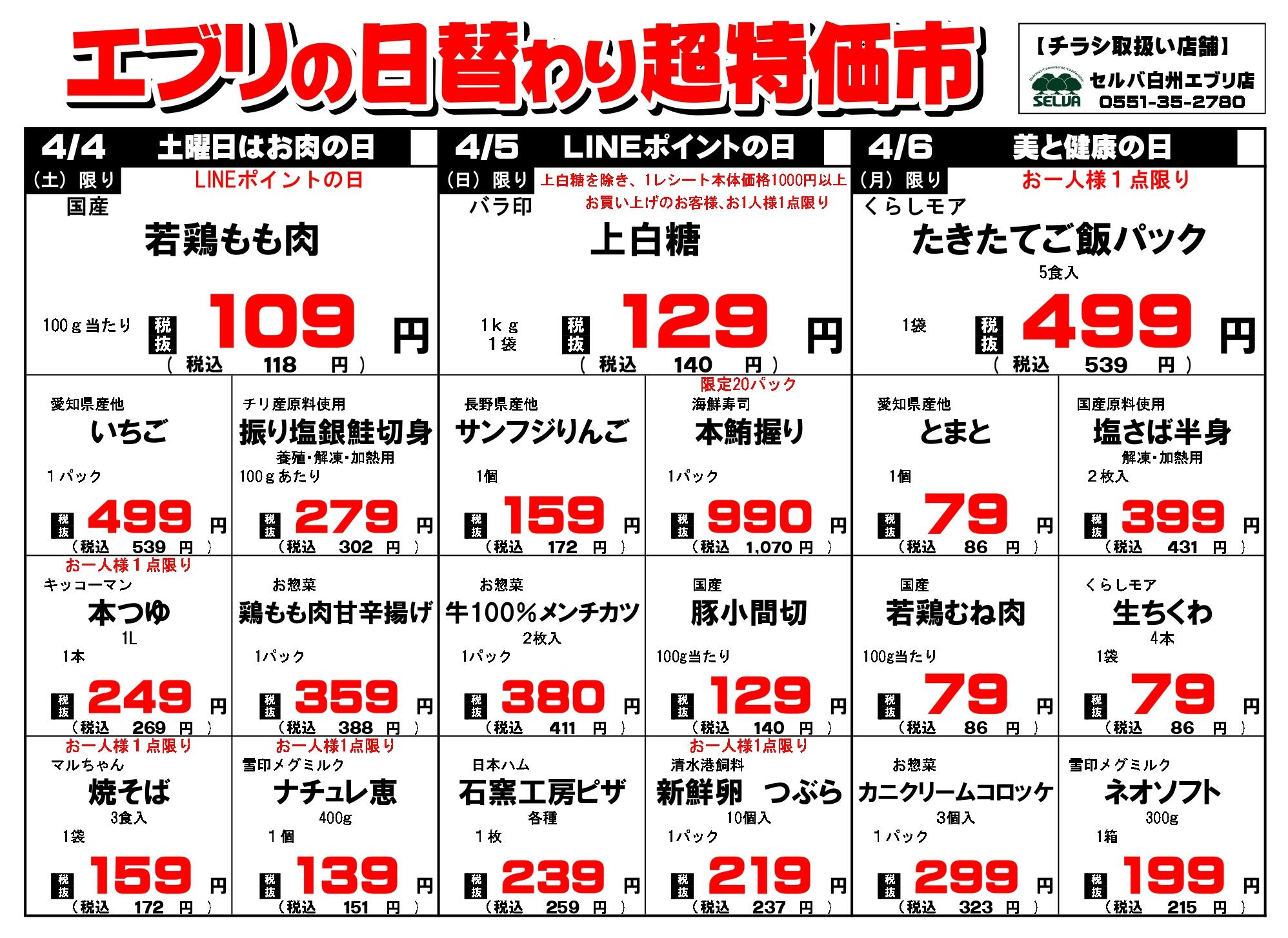 セルバ白州エブリ店今週のチラシ(2026年3月30日〜4月5日)