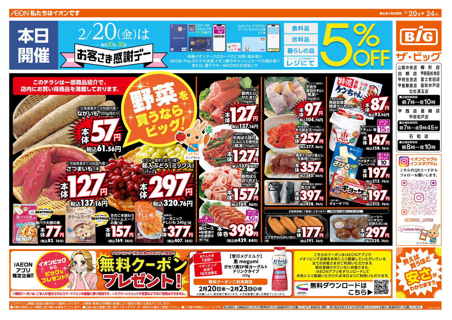 ザ・ビッグ櫛形店今週のチラシ(2026年2月16日〜2月22日)