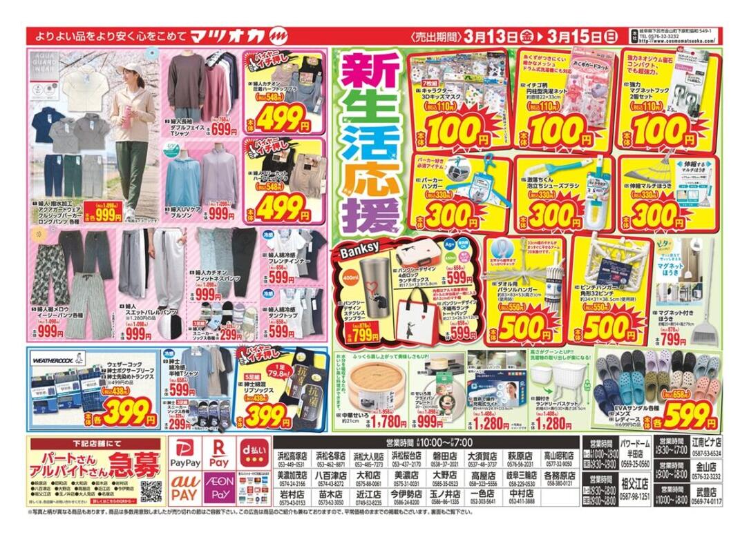 暮らしの衣料マツオカ各務原店今週のチラシ(2026年3月9日〜3月15日)