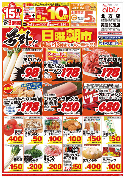 ※「店舗の掲載内容について」チラシガイドに掲載している情報は、独自に調査した内容及びユーザーから頂いた情報を掲載しています。お気づきの点がございましたら「お問い合わせ」よりご連絡ください。また店舗の営業状況、商品に関するお問い合わせは直接店舗事業者にご確認ください。