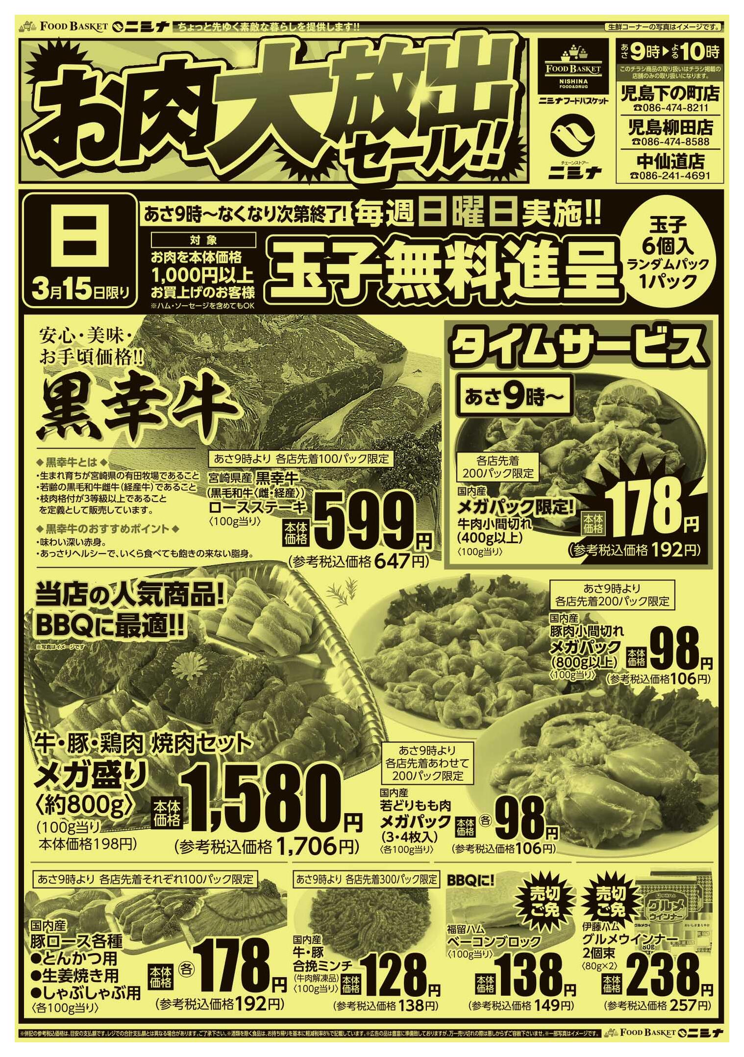 ニシナフードバスケット中仙道店今週のチラシ(2026年3月23日〜3月29日)
