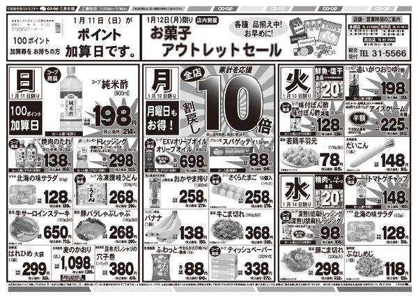 特売やセール情報など最新のチラシを掲載中。(4種類、5枚のチラシを掲載しています)