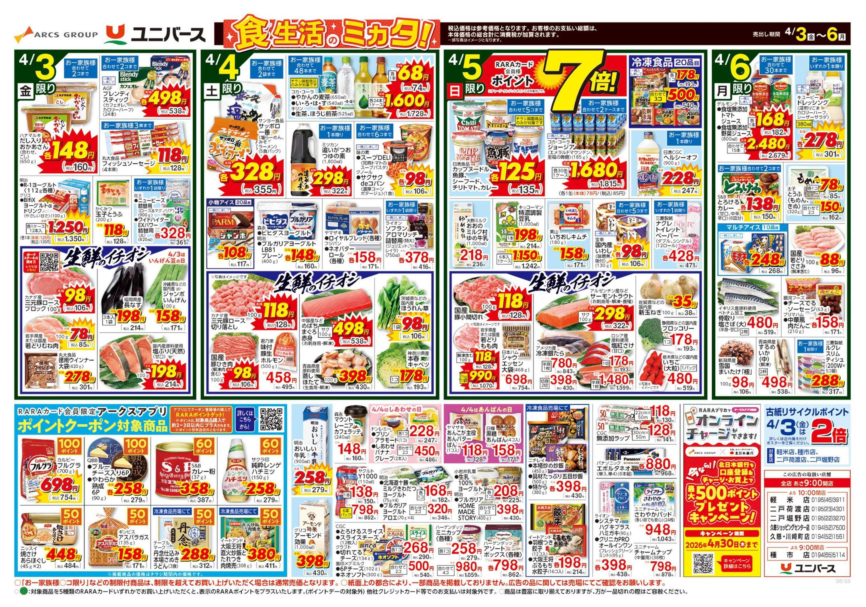ユニバース軽米店今週のチラシ(2026年3月30日〜4月5日)