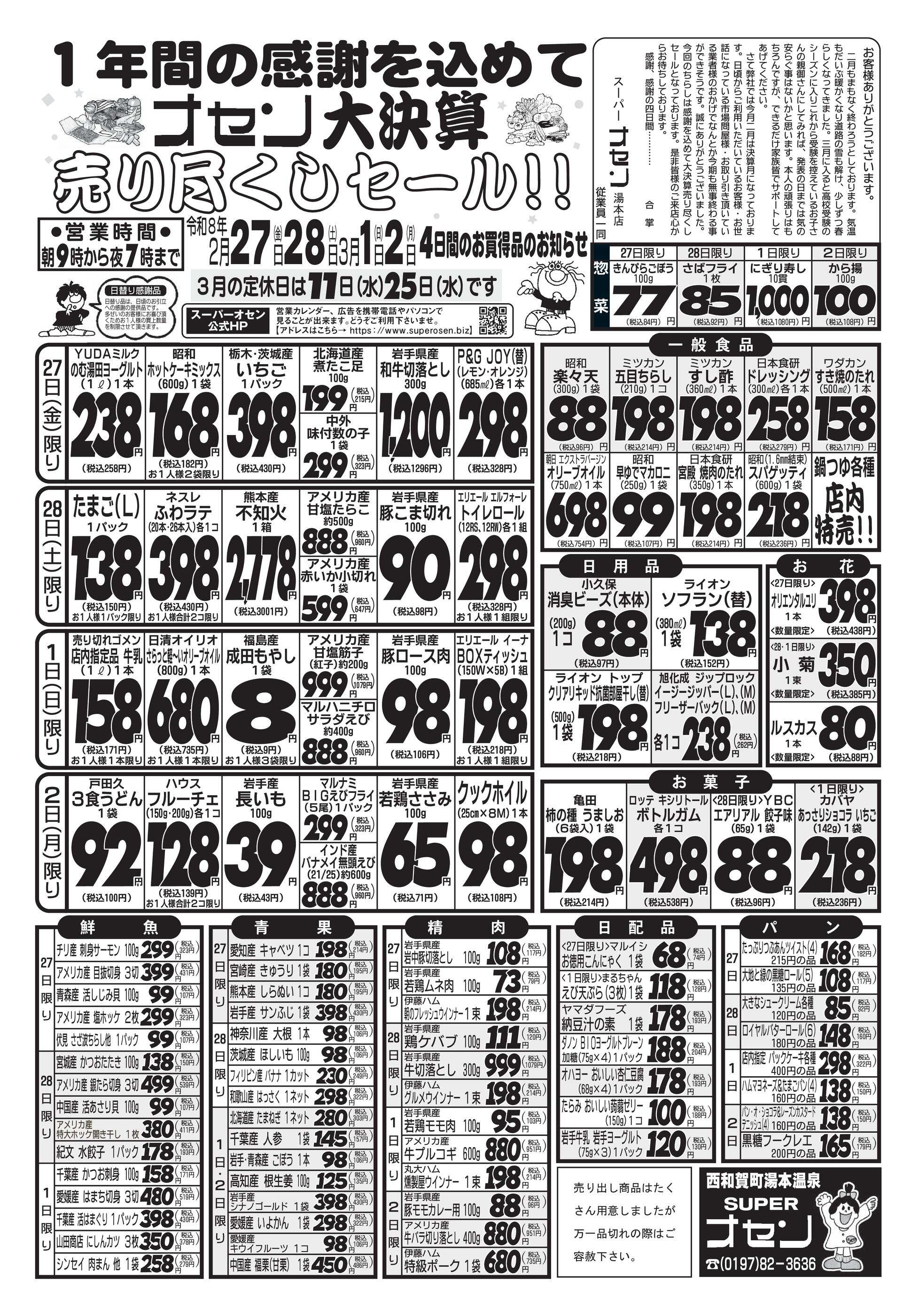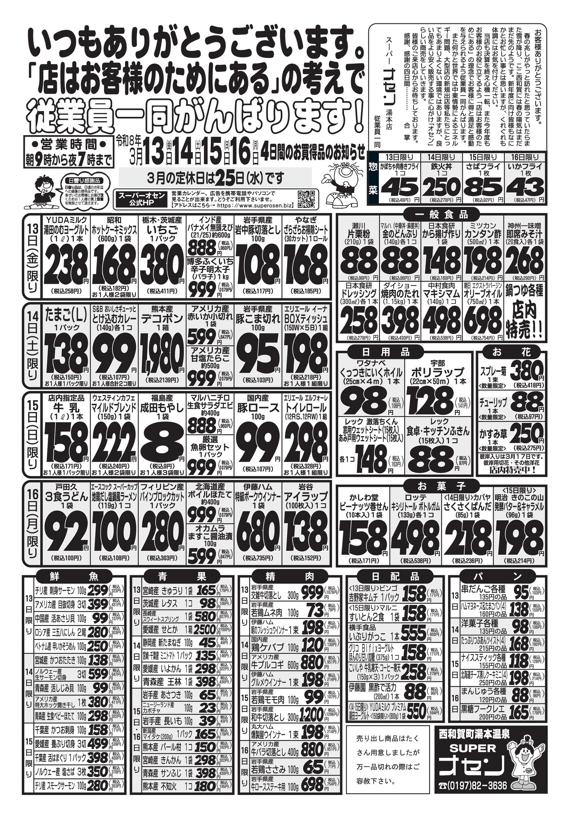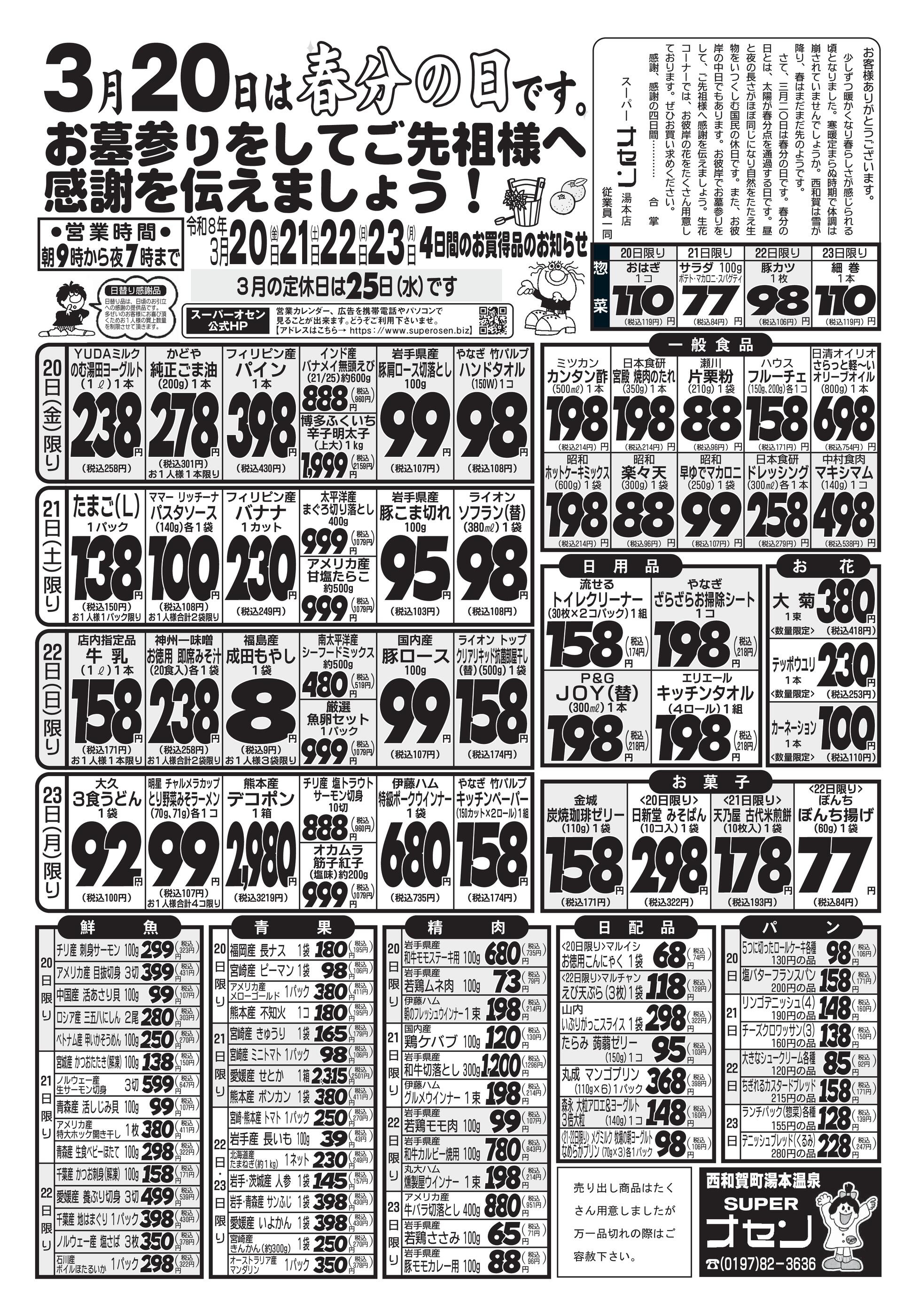 スーパーオセン湯本本店今週のチラシ(2026年3月23日〜3月29日)