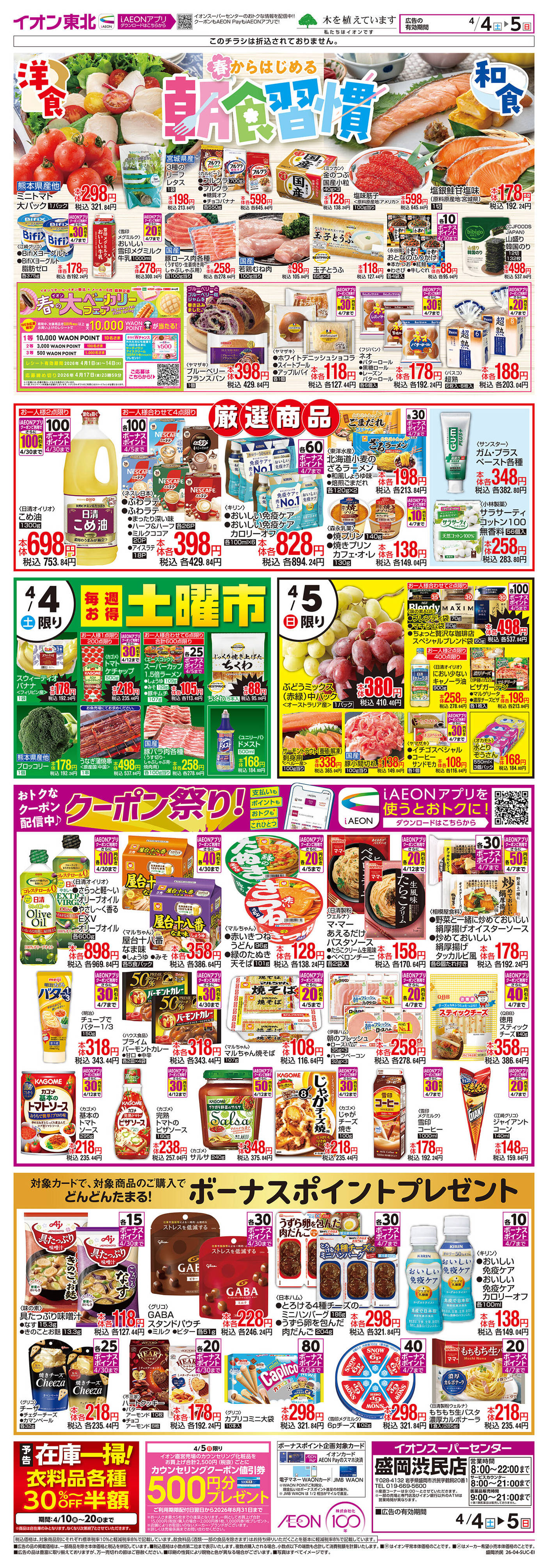 イオンスーパーセンター盛岡渋民店今週のチラシ(2026年3月30日〜4月5日)