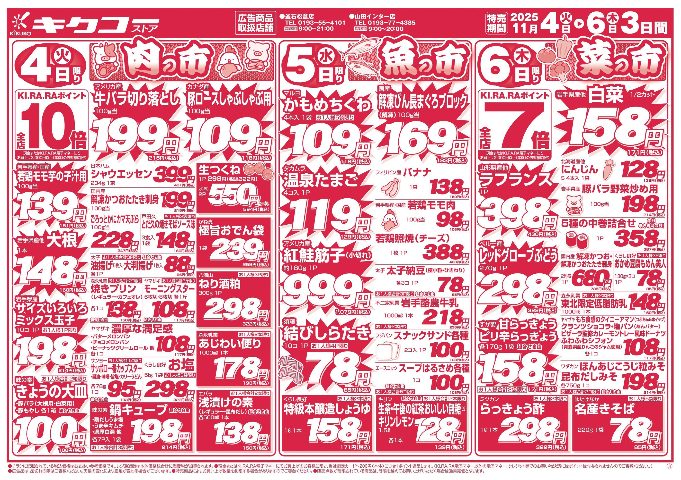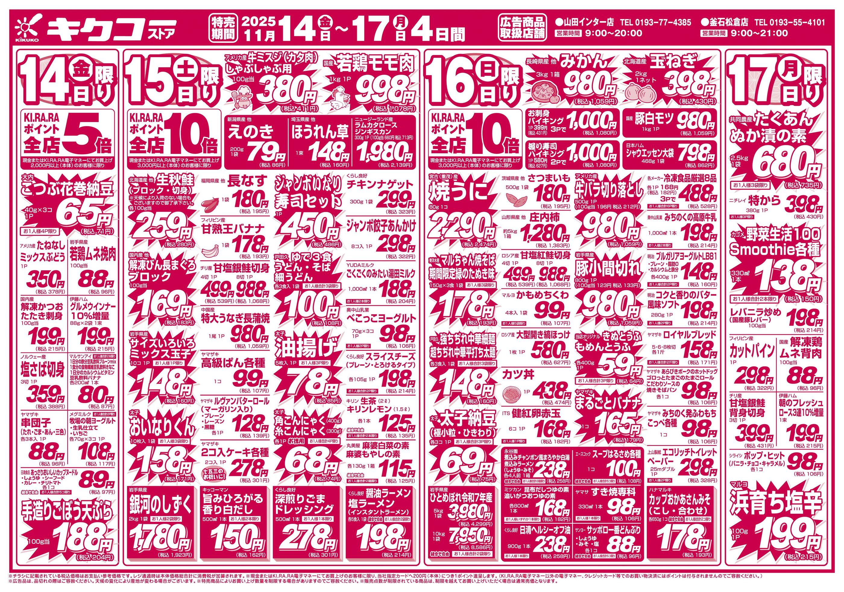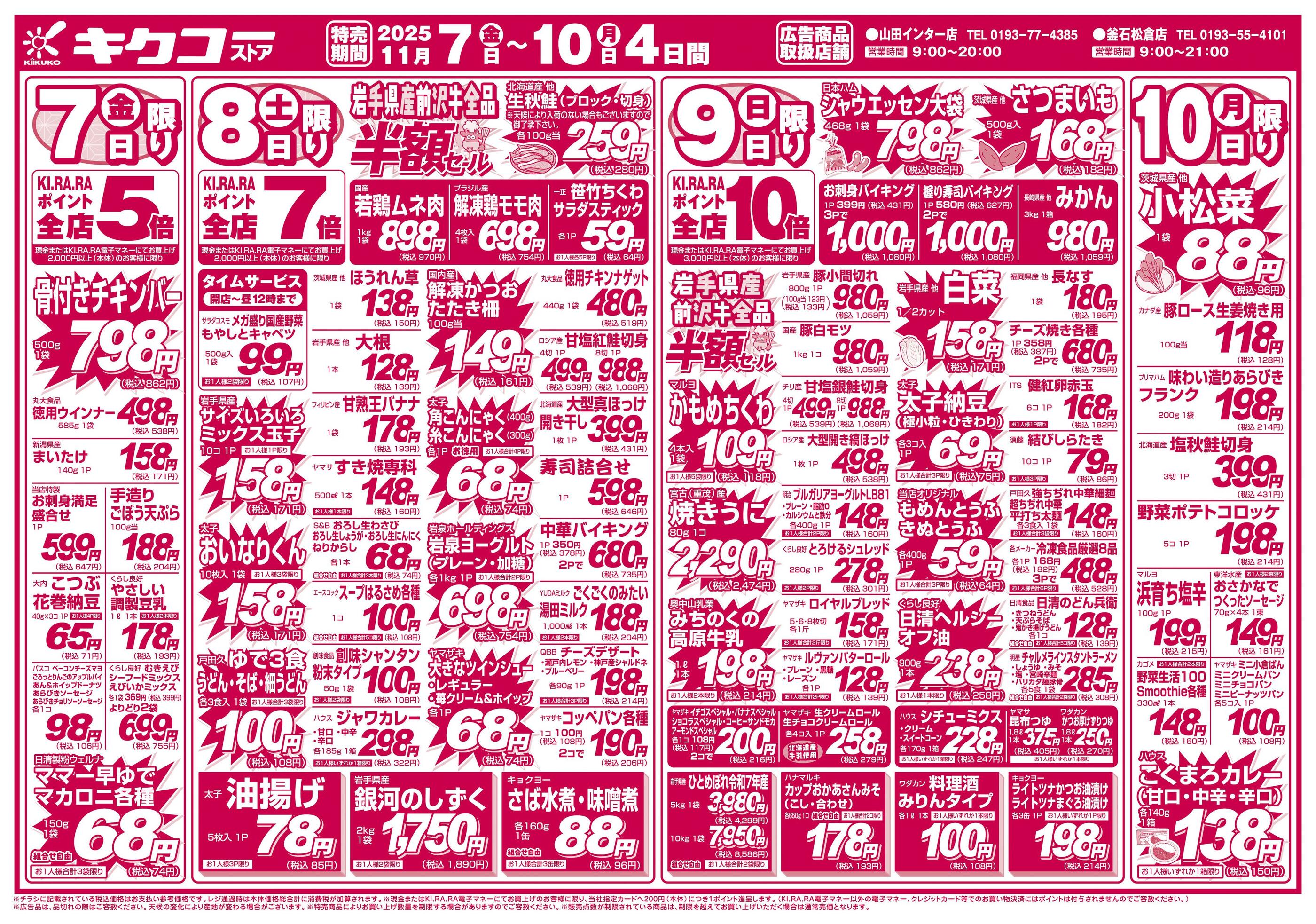 キクコーストア釜石松倉店今週のチラシ(2025年11月10日〜11月16日)