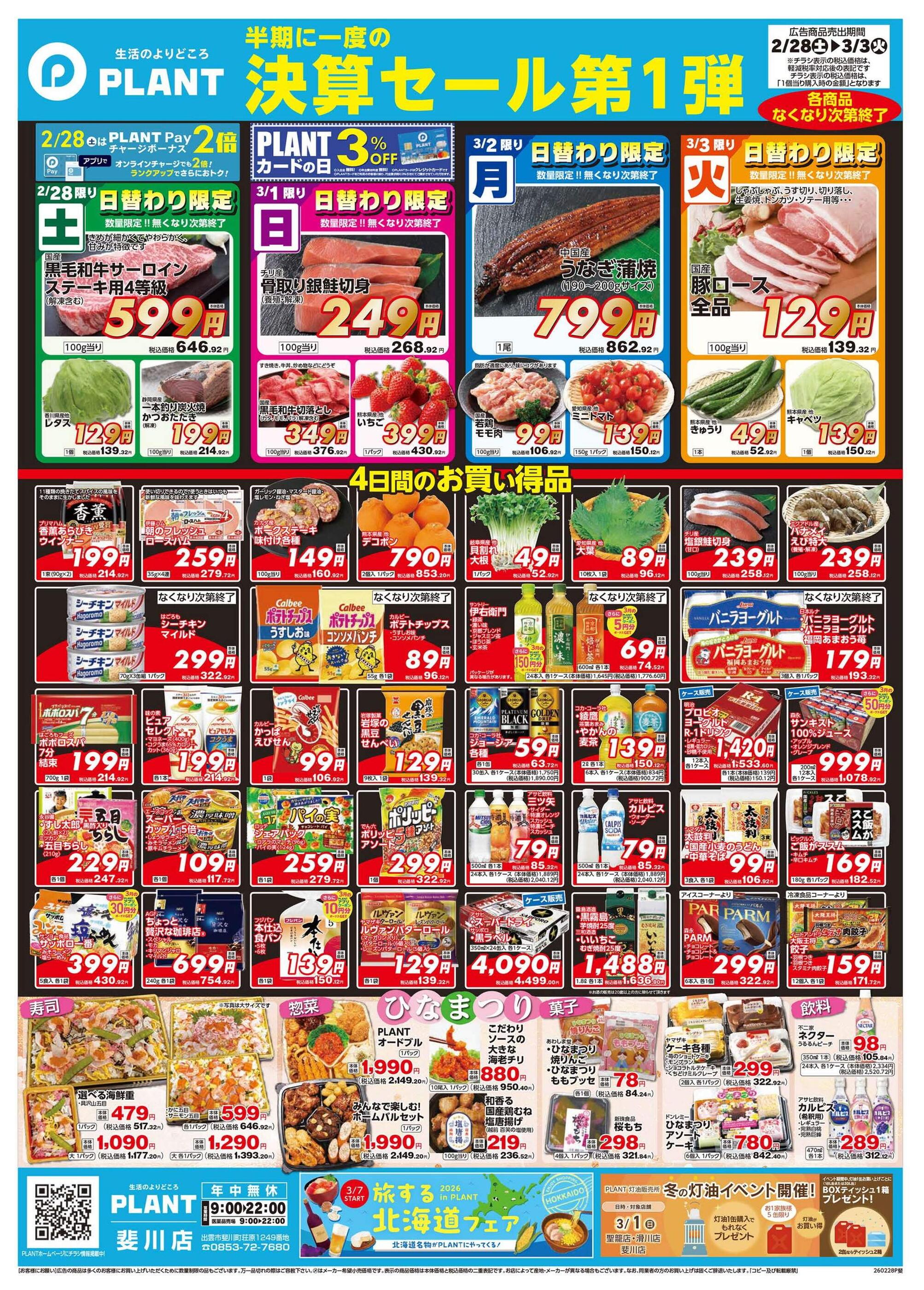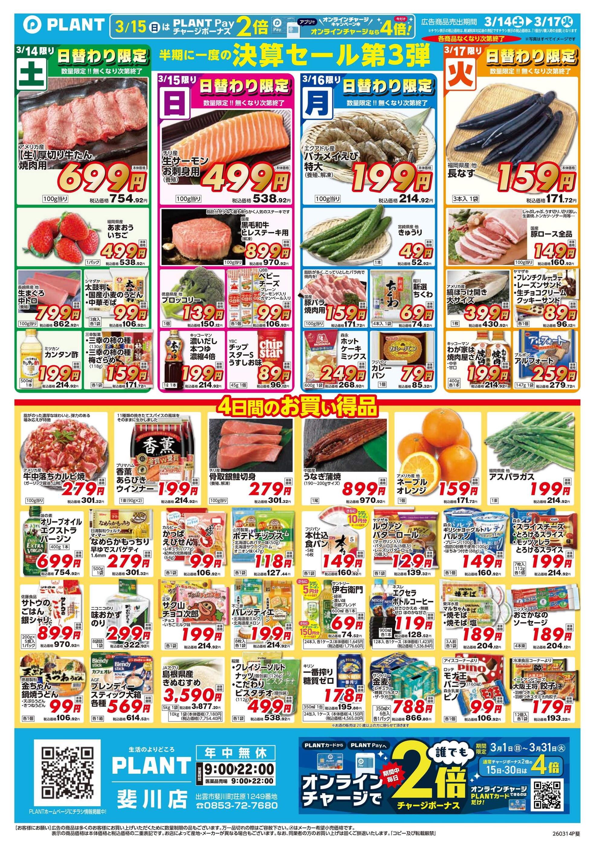 SUPER CENTER PLANT斐川店今週のチラシ(2026年3月9日〜3月15日)
