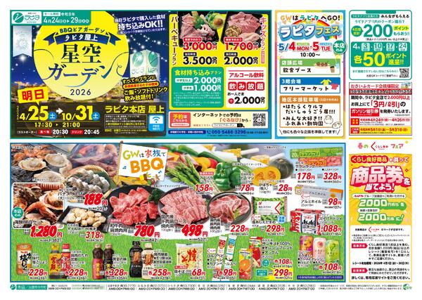 特売やセール情報など最新のチラシを掲載中。(1種類、1枚のチラシを掲載しています)
