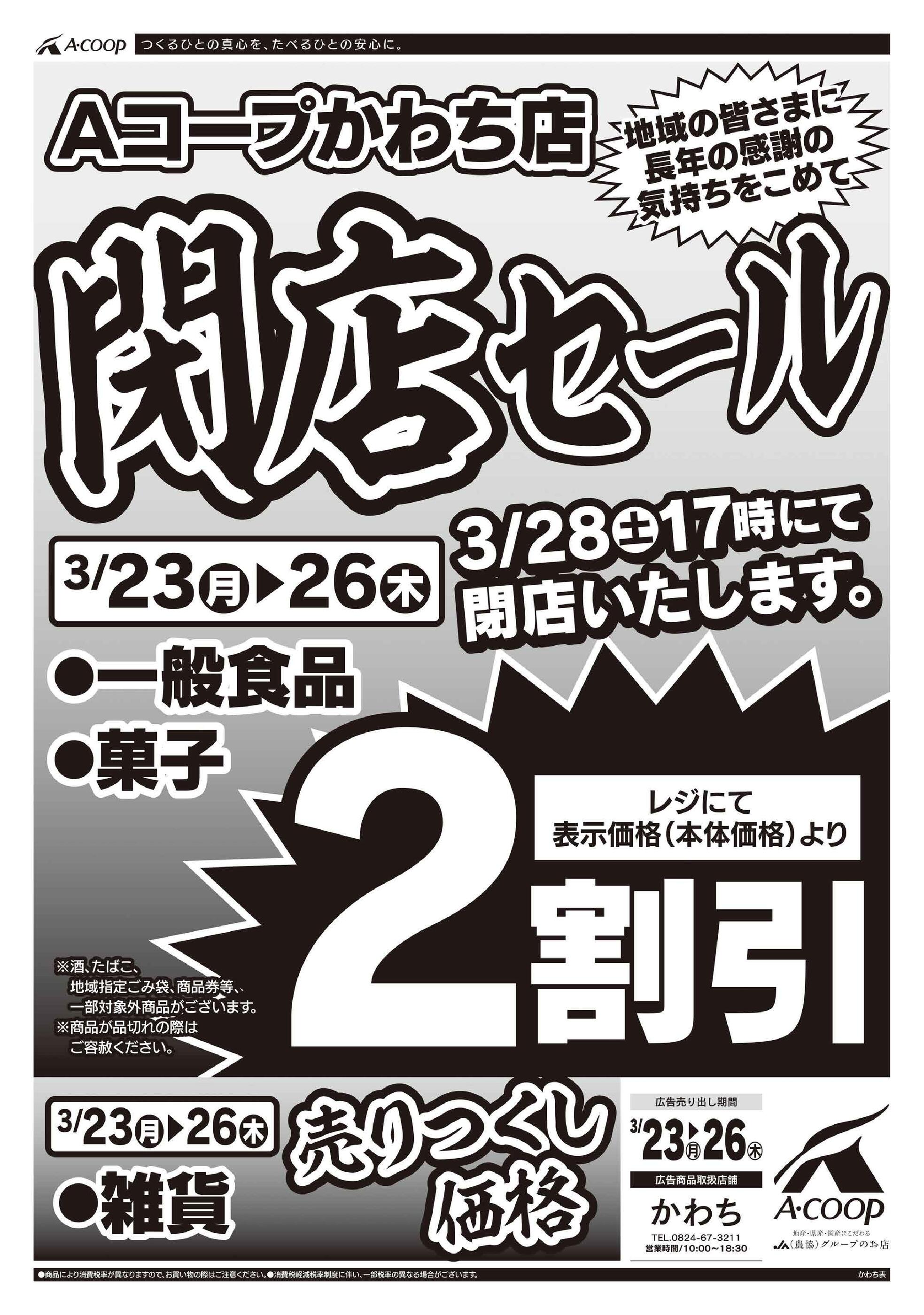 Aコープかわち店今週のチラシ(2026年3月23日〜3月29日)