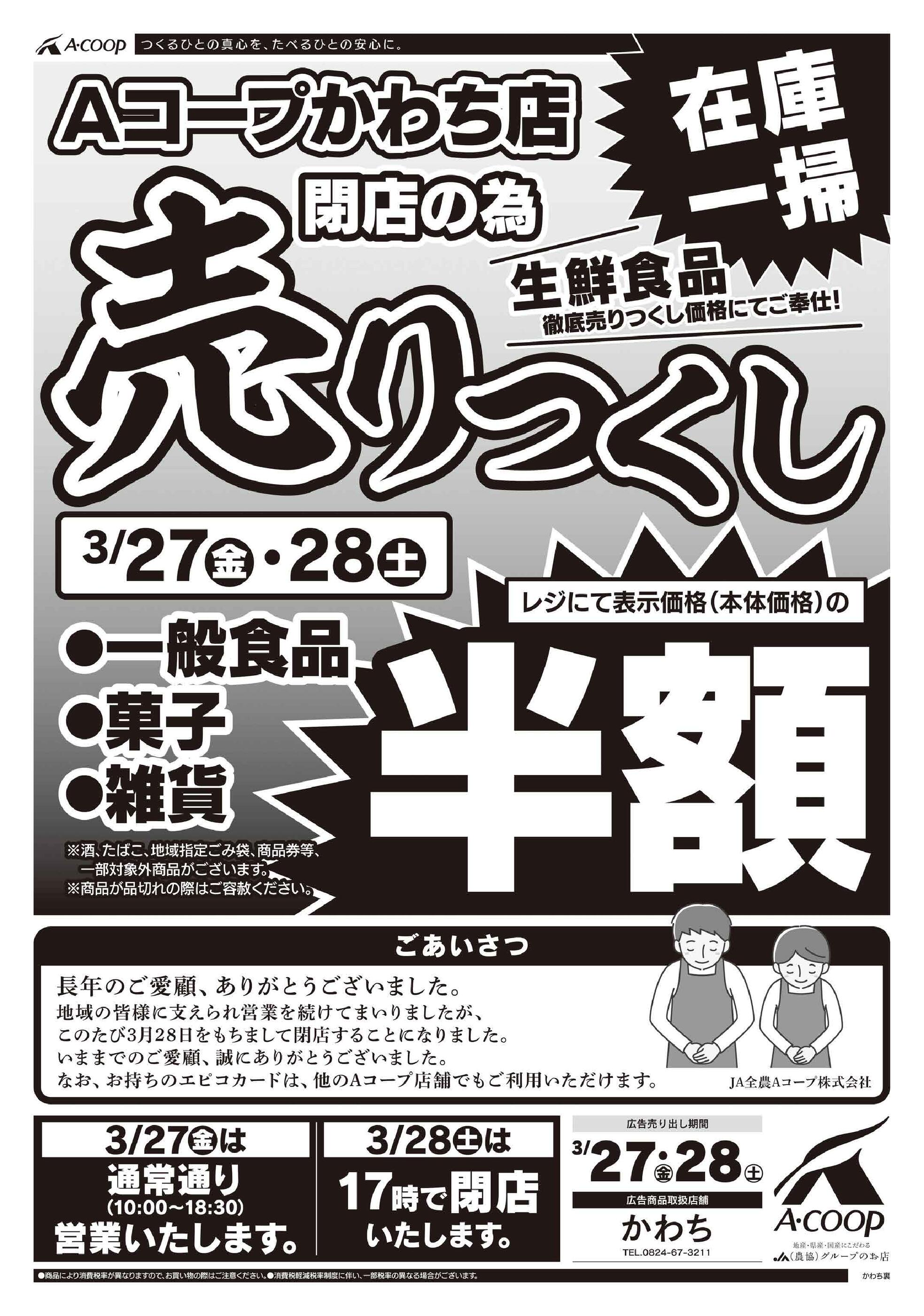 [3/28閉店予定]Aコープかわち店