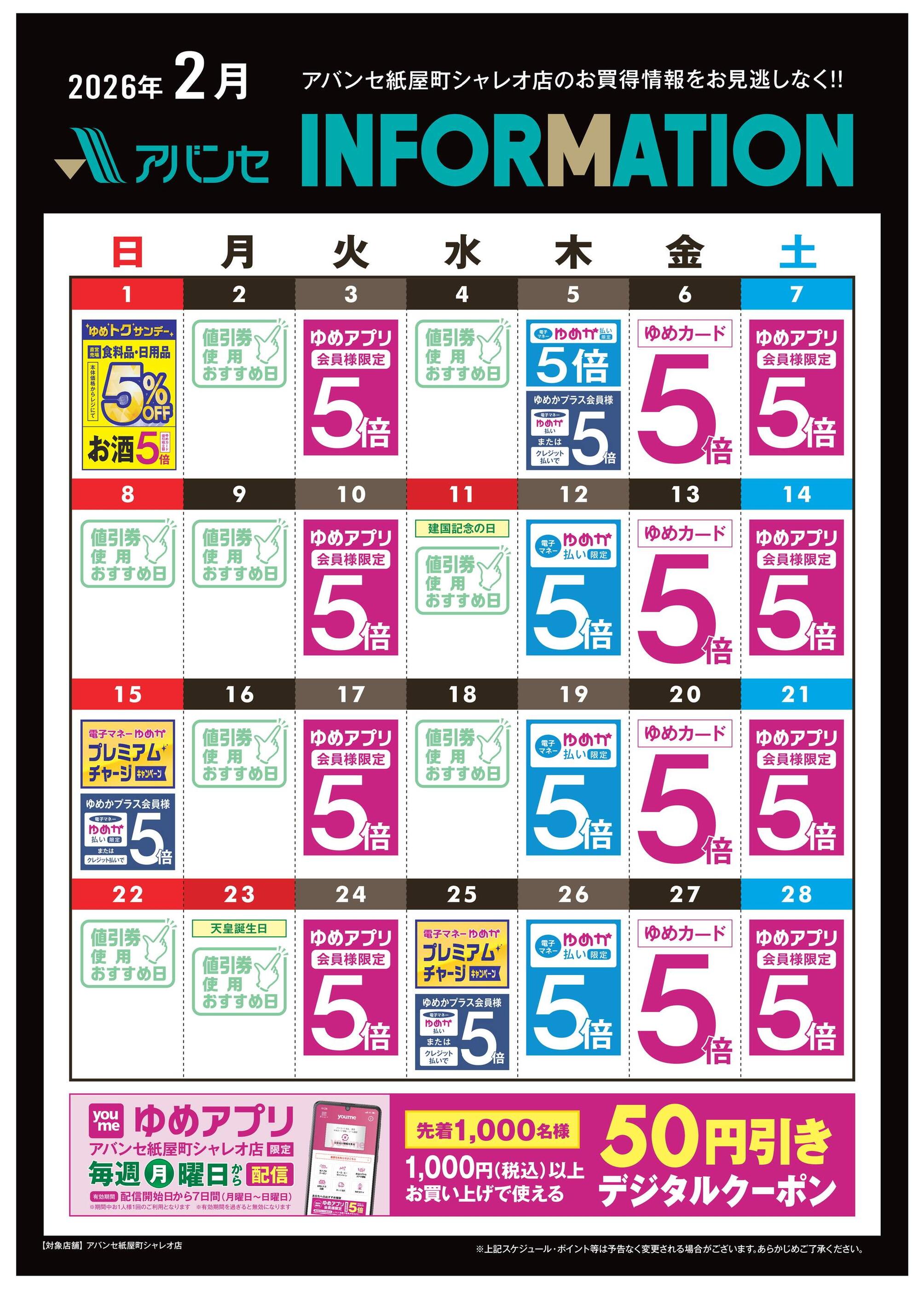 アバンセが紙屋町シャレオ店今週のチラシ(2026年2月2日〜2月8日)